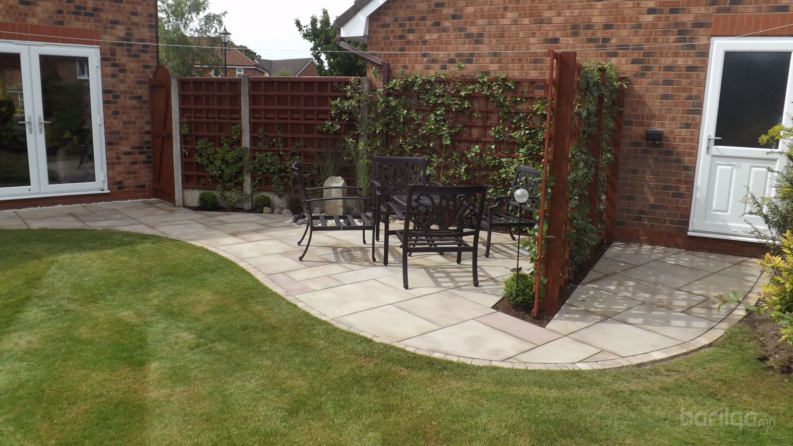 Үүний дараа тухлан суух саравч, сүүдрэвч хийх бол мөн хийж гүйцэтгэх ёстой. Байнга байх саравчнаас илүүтэйгээр байгалийн чулуун талбай бэлдэж түүн дээрээ ил гал түлэх зориулалт бүхий байхаар төлөвлөх нь илүүтэй шийдэл юм. Ингэснээр сүүдрэвчид суухыг хүссэн үедээ дэлгэж, бусад үед талбайг ашиглахын тулд хураах нь илүү зай талбай хэмнэсэн төлөвлөлт болно.