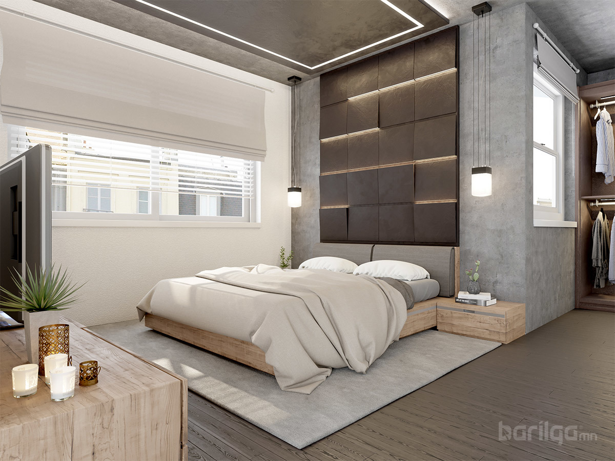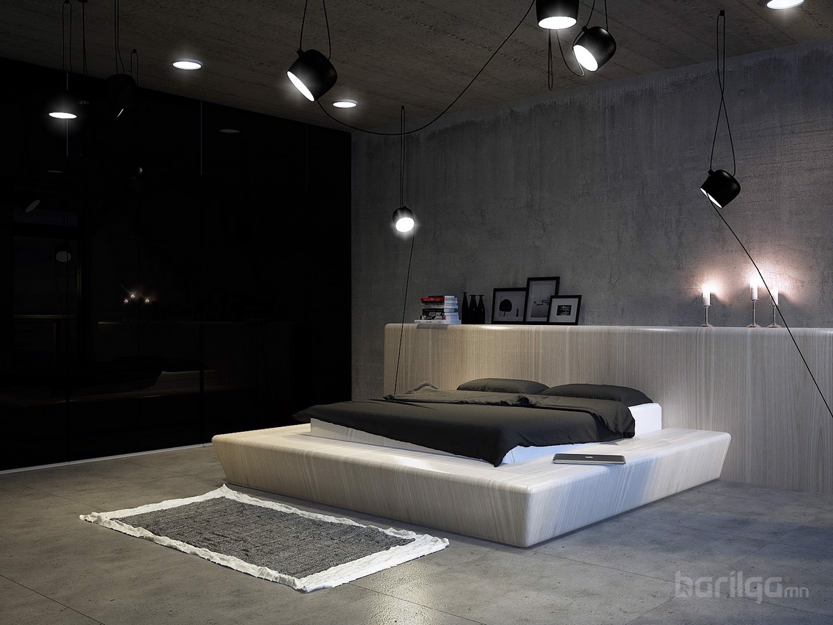 Бетонон ханыг жаахан загварт оруулахад л дулаан уур амьсгал бүрдэх боломжтой бөгөөд үүнийг харуулсан унтлагын өрөөний интерьер жишээ загваруудыг танилцуулж байна.