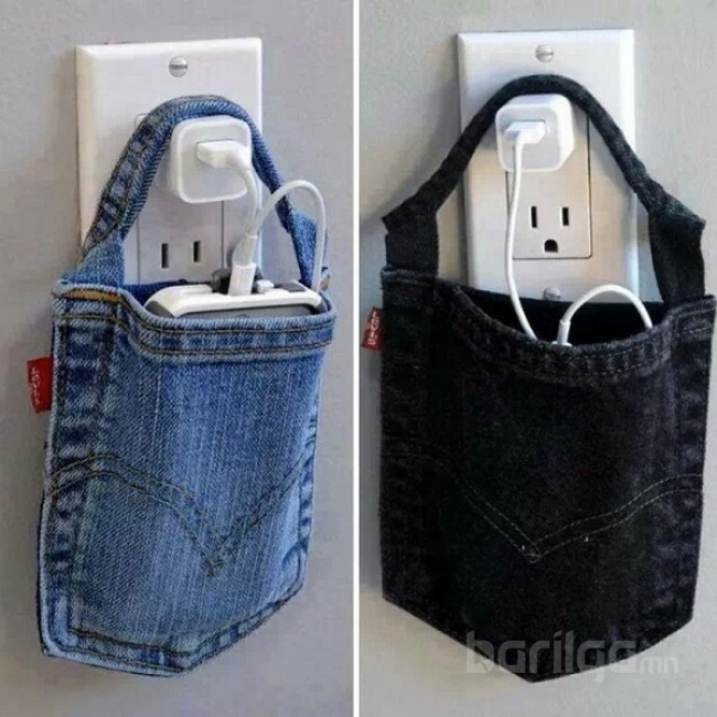 Цэнэглэж болох жижиг эд зүйлсийг залгууртай нь маш цэвэрхэн харагдуулах олон аргын нэгийг нь танилцуулъя. Хуучин жинсэн өмднийхөө халаасаар энэ аргыг туршаарай.