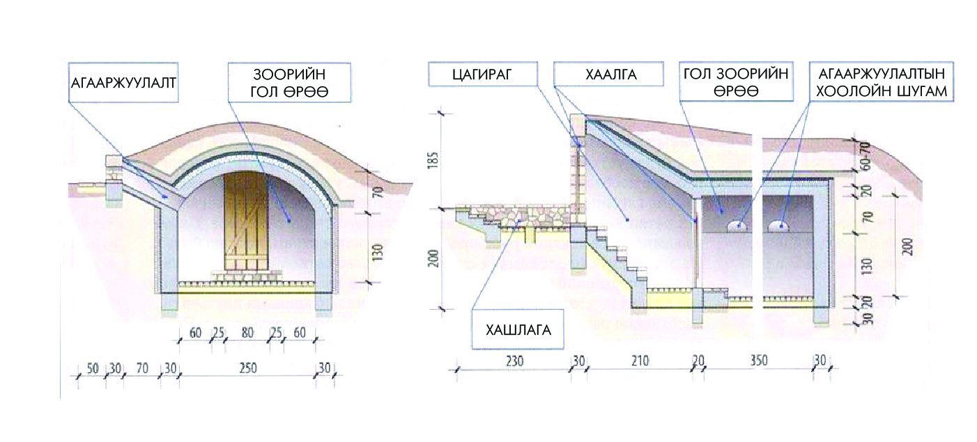 Зоорийн тааз, хана хэсэгт агааржуулалт хийгээрэй. Үүний дараа нь таазны дээр нь сууриас гарсан шороогоороо 1 м хүртэл хучилт хийнэ.