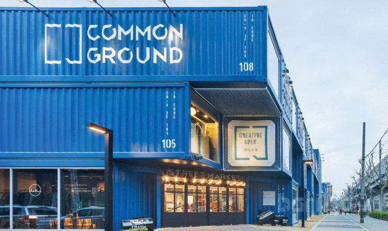 Уламжлалт барилгын шинж чанарыг эвдэж, шинэлэг болсон энэхүү “Common Ground” барилга эрч хүчтэй, залуу дизайнеруудын бүтээл бөгөөд дунд түвшний дэлгүүр, редакцийн дэлгүүрүүд, зонхилох брэндүүдийг худалдаалдаг, хүмүүсийн өргөнөөр үйлчлүүлэх худалдааны төв болж чаджээ. 200 гаруй зөөврийн чингэлгээр ийнхүү 7 дэлгүүр, 20 орчим зоогийн газар, дээврийн террастай өвөрмөц, гоёмсог байгууламжийг Сөүл хотод очвол заавал үзээрэй.