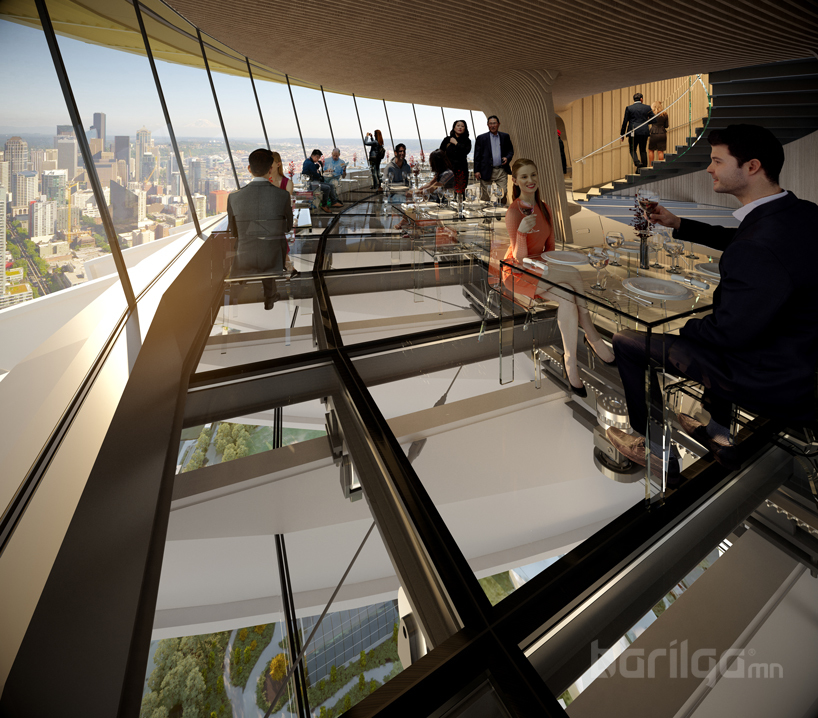 Барилга газраас 500 футын өндөрт байрлах бөгөөд ресторан нь шилэн хана, шилэн сандалтай байх юм.