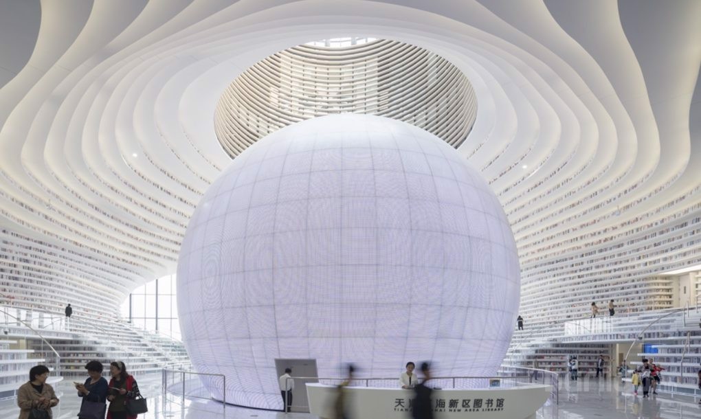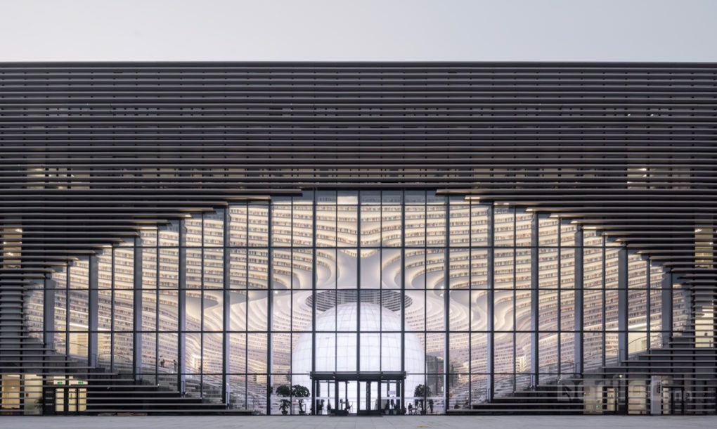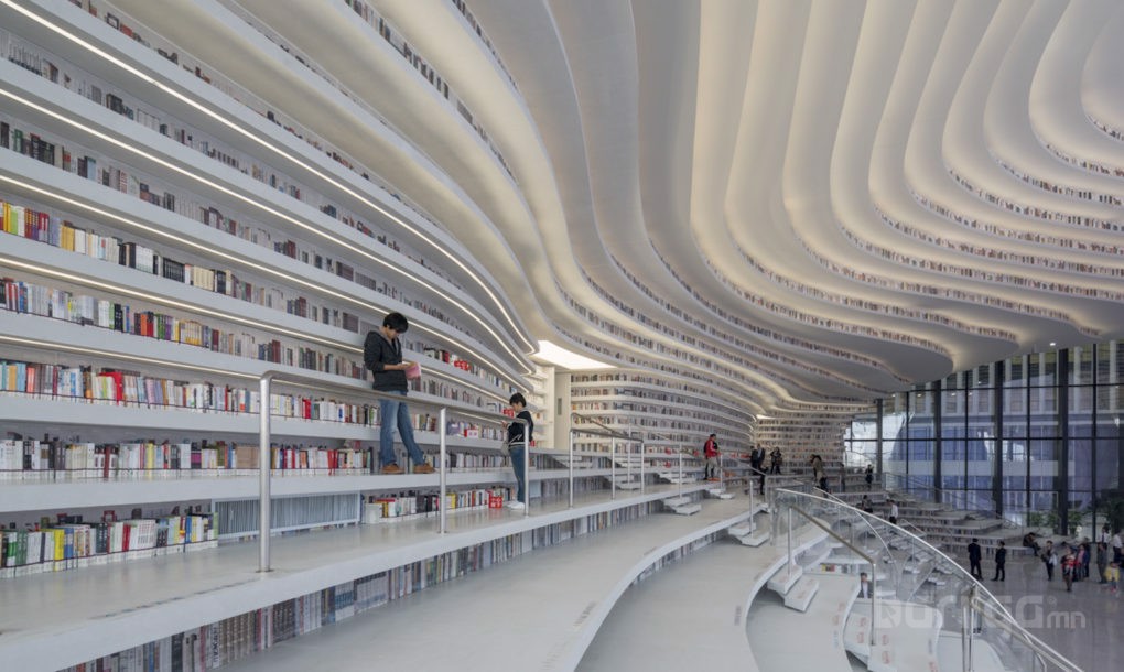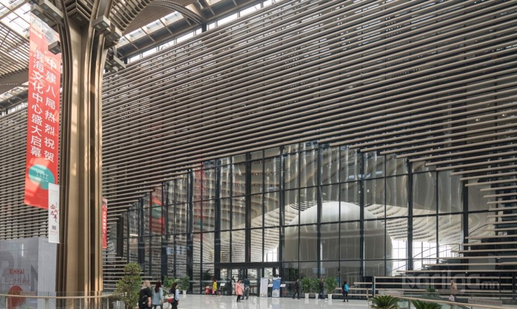 Саяхан барилгын ажил нь дуусч, ашиглалтад ороод буй Тьянжиний Бинхай нийтийн номын сан нь бид бүхний урьд өмнө харж байгаагүй гайхамшигтай бүтээн байгуулалт болж чаджээ.