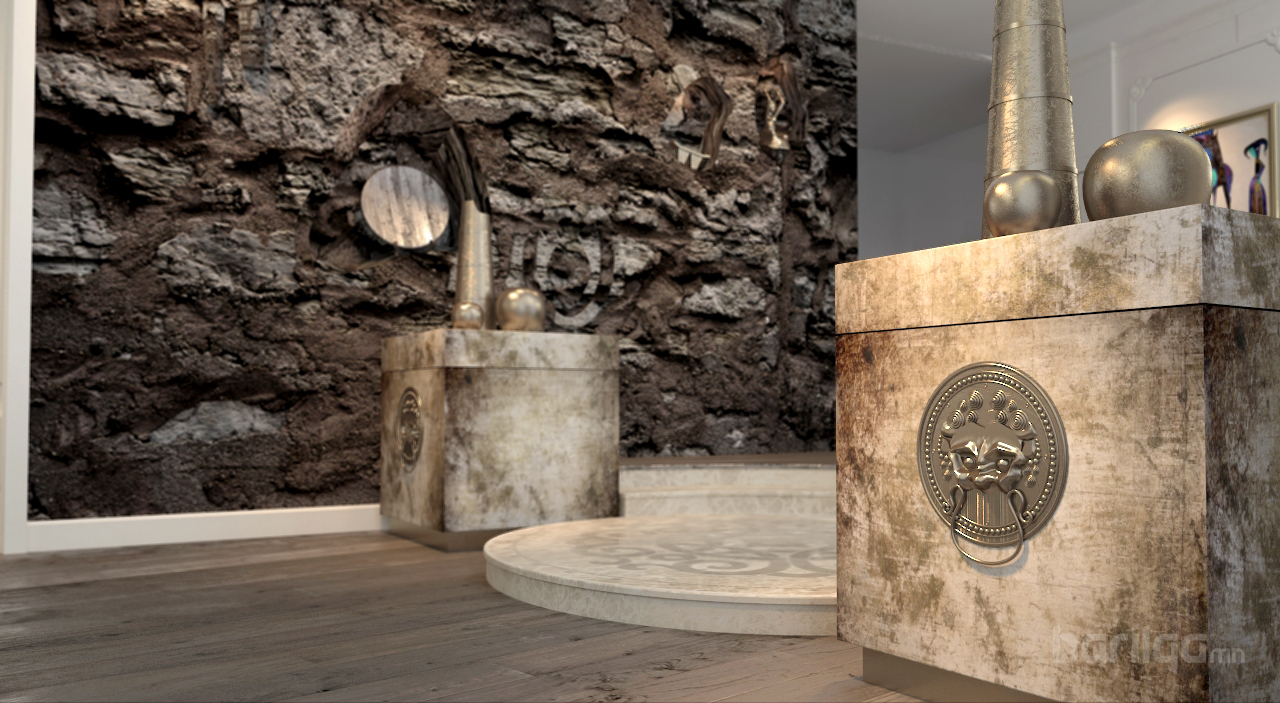 Улс үндэстний өв соёл, амьдралын хэв маягт тохируулж интерьерийн шийдлүүд нь хувьсан өөрчлөгдөж байдаг. Дараах интерьер нь зөвхөн үндэсний хээг ашигласан төдийгүй Монгол хүний амьдралын хэв маягийг орчин үетэй хэрхэн холбох талаар ихээхэн судалгаа хийсний дүнд гарсан шийдэл юм. Монгол гэрийг зөвхөн дугуй хэлбэртэй нүүдлийн сууц гэхээсээ илүү уг сууц бидний амьдралын хэв маягт ууссан “гал голомт” гэдэг ойлголтыг оруулсныг цохон тэмдэглэх хэрэгтэй байх. Эртнээс бид гал, ус, тэнгэр, байгаль эхээ шүтэж ирсэн. Мөн гал гэдэг бол гэр бүлийн бэлгэ тэмдэг, гэрийн “амь” учир гэр бүлийн амрах хэсэгт тулга бүхий шилэн камин зуухыг төлөвлөсөн.