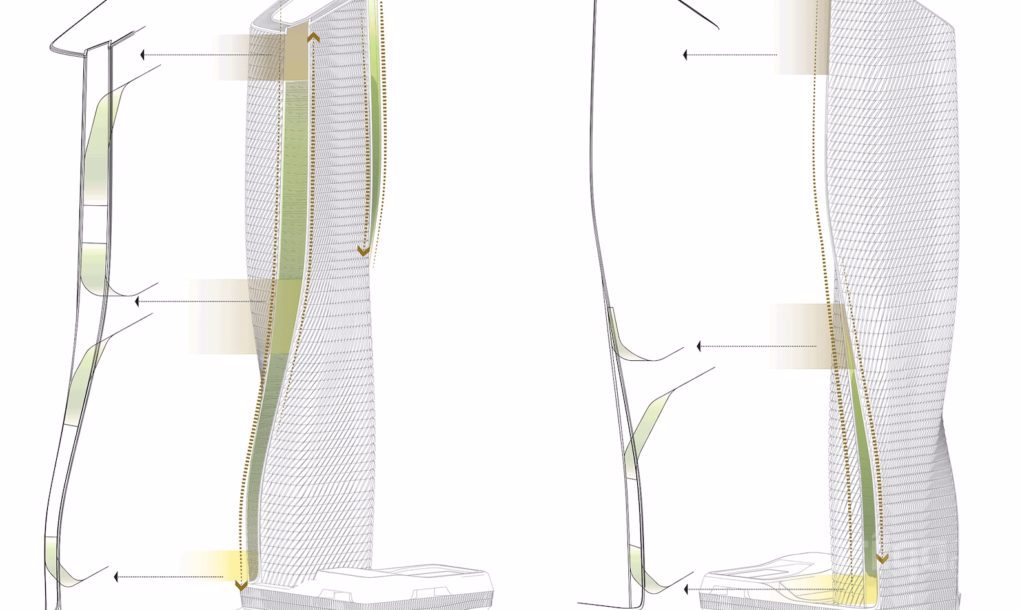 Шейх Заяид авто зам дагуу, алдарт “Бурж Халиф” барилгын ойролцоо байрлах хэмээн архитекторууд дүгнэжээ. Мурий, тэгш хэмт бус энэхүү цамхгийн фасаданд ашигласан керамик хавтангийн цаана гэрэлтүүлгийн иж бүрэн системийг суурилуулсан байна. Тэдгээр фасад нь өдрийн цагт байгалийн гэрлийн шууд тусгалыг шүүж барилгын дотор талд нэвтрүүлэх бөгөөд шөнийн цагаар барилгыг яг л амьсгалж буй мэт харагдуулах аж. Фасадны тэдгээр гэрлүүд нь автомашины зогсоолд суурилуулсан нарны зайн хавтангуудаас үүсгэсэн эрчим хүчээр ажиллах юм.