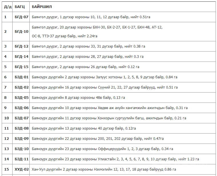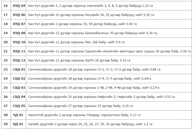 Нийслэлийн Хот төлөвлөлт, ерөнхий төлөвлөгөөний газраас ашиглалтын шаардлага хангахгүй нийтийн зориулалттай жагсаалтад орсон орон сууцны барилгын барилгажилтын төслийг боловсруулж, буулган шинээр барих ажлыг гүйцэтгэх эрх бүхий аж ахуй нэгж байгууллагыг сонгох шалгаруулалтад урьж байна.