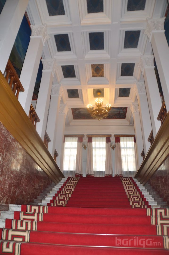 Барилгын талбайд нийтдээ 2580 куб метр газар ухах, тэгшлэх ажлыг дуусгах, суурийн 142 куб метр чулуу өрөх, туйпуу өрж, ханыг босгох, гадна, дотно шавардлагыг бүрэн дуусгах, нэлээд газарт бетон цутгах, олон хаалга, цонх, шат хийх, гантиг чулууны заслалыг гүйцэтгэх зэрэг ихээхэн цаг хугацаа шаардсан ажил их байсан учраас ашиглалтад өгөх хугацаанаас нэлээдгүй хойшилсон байдаг.