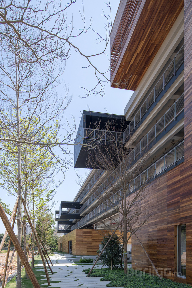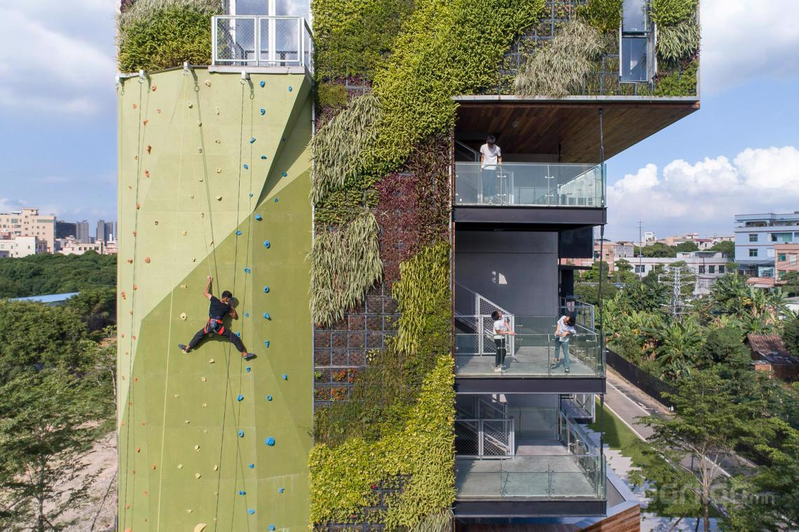 Энэхүү барилга тун өвөрмөц загвартай байх бөгөөд гадна ханын хэсэгтээ уулын спортоор хичээллэх боломжоор хангаж өгсөн. Дотроо стандартын дотуур байр, нийтийн хоолны өрөө, биеийн тамирын заал, номын сан зэрэг бусад шаардлагатай тоног төхөөрөмж багтана. Барилгын фасаданд төмөр бетонон системийг ашиглах төдийгүй эко-технологийн шинэ шийдлүүдийг нэвтрүүлэх нь Вэнки-гийн үндсэн шаардлагуудын нэг юм. Барилга нь 5 давхар, зүүнээс баруун тийш 89.2 метр, хойноос урагшаа 9.1 метрийн урттай. Дээвэр болон үүдний тагтны хэсэгтээ амрах зориулалтын газартай байна.