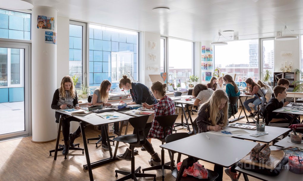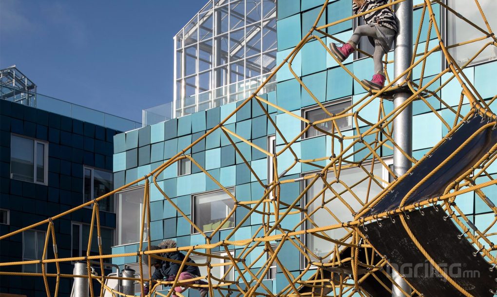 Копенгаген хотноо баригдсан тус сургуулийг ийнхүү нарны зайн хавтангаар тоноглож буй нь нэг талаар байгаль орчинд ээлтэй төдийгүй барилгын гадна үзэмжинд эерэгээр нөлөөлөх шийдэл болсон гэж төсөл хэрэгжүүлэгчид нь онцолжээ.