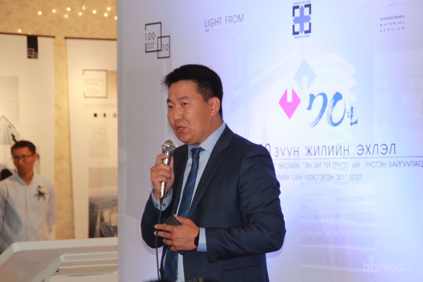 Юуны өмнө өнөөдрийн “10|100 ЗУУН ЖИЛИЙН ЭХЛЭЛ” үзэсгэлэнгийнхээ нэрийг товч тайлбарлая аа. Одоогоос 10 жилийн өмнө, бага залуу байхдаа томоогүй гэнэн мөрөөдлөөр компаниа байгуулж байсан түүхтэй. Тэр үед гадны зураг төслийн компаниудыг судалж үзээд 100 жилийн түүхтэй ийм л түүхийг бүтээсэн компани бий болгохыг мөрөөдөж, анх энэхүү компаниа байгуулж байлаа. Мөрөөдлийнхөө эхлэлийг тавьсан тэр цагаас хойш 10 жилийн ой өдгөө ийнхүү тохиолоо. Хэдийгээр эдийн засаг тогтворгүй, барилгын салбар зогсонги байгаа ч гэсэн бид урьдынхаасаа илүү их хичээн, хөдөлмөрлөж зорилгодоо хүрэх зуун жилийн эхлэл хэмээн үзэсгэлэнгийнхээ нэрийг “10|100” хэмээн нэрийдэж байна.
