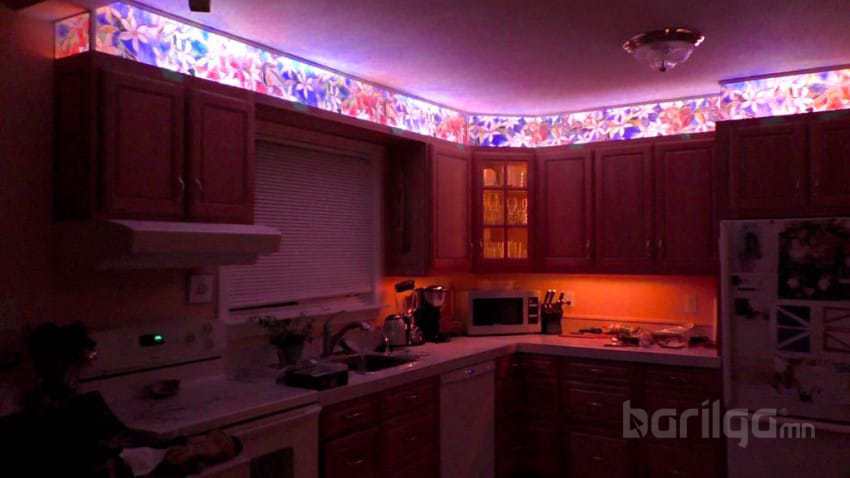 Дараах гал тогооны тавилгыг чимэглэхэд танд шил, шилний плёнк /хуулга/, туузан гэрэл, хүрээ хэрэгтэй. Зурагт хийх дарааллыг үзүүлэв.