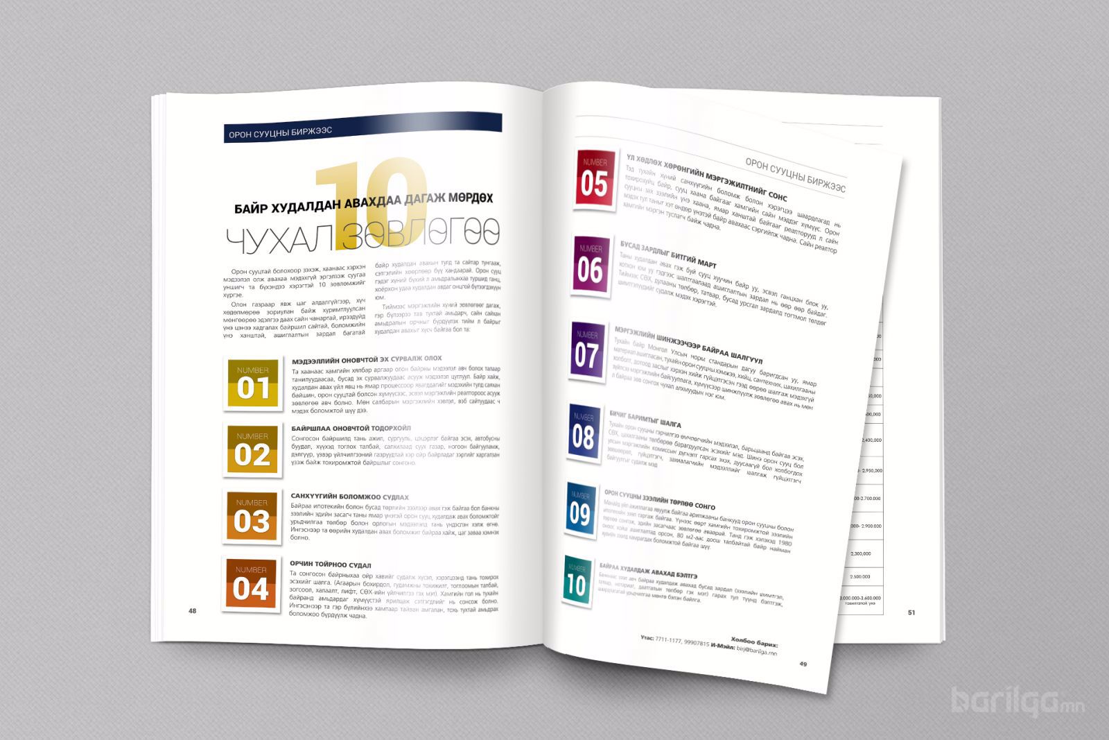Мөн “Барилга, орон сууц 2017” үзэсгэлэн тун удахгүй болох гэж байгаатай холбогдуулан олон улсад барилгын үзэсгэлэн яармаг хэрхэн зохион байгуулагддаг тухайд материал орууллаа. Энэ мэтчилэн содон соргог, цаг үеэ мэдэрсэн мэдээллийг наймдугаар сарын дугаараас хүлээн аваарай. Мэдээж хэрэг таны байнгын хардаг үнэ ханшны булан шинэчлэгдлээ.