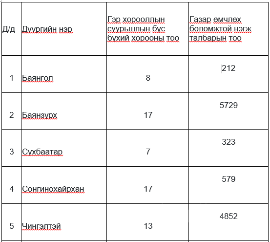 Аяны хүрээнд 13463 нэгж талбарыг газар дээр нь үзэж ямар нэг зөрчилгүй тохиолдолд баримт материалын бүрдлийг ханган авч газар өмчлөхөд нь дэмжлэг үзүүлэн ажиллах юм.