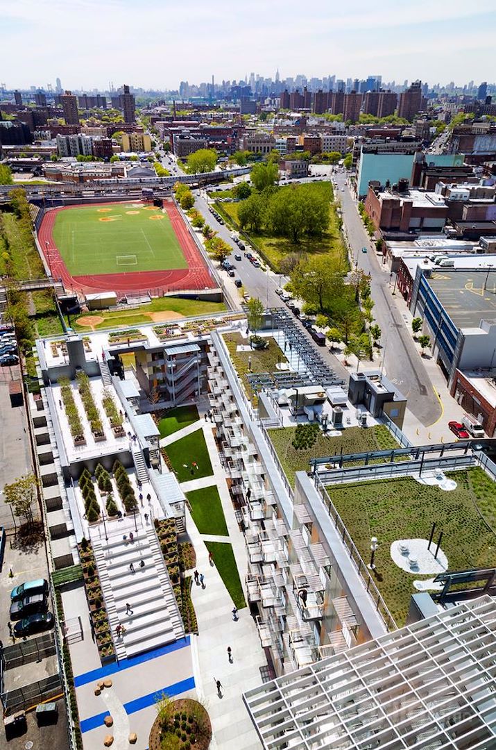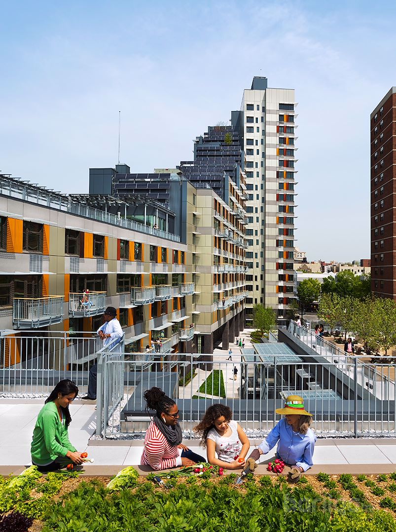 2012 онд Нью-Йоркийн Өмнөд Бронксид бага, дунд орлоготой хүмүүст зориулсан 222 айлын “Via Verde” хэмээх үзэсгэлэнт орон сууцны цогцолбор хорооллыг нээсэн юм. Цогцолбор нь босоо тэнхлэгийн хэлбэртэй, үргэлжилсэн нэг барилга шиг харагддаг. Дээвэр бүр дээр ногоон бүстэй. Төслийн зохиогч нь Гриймшав /Grimshaw/ юм.