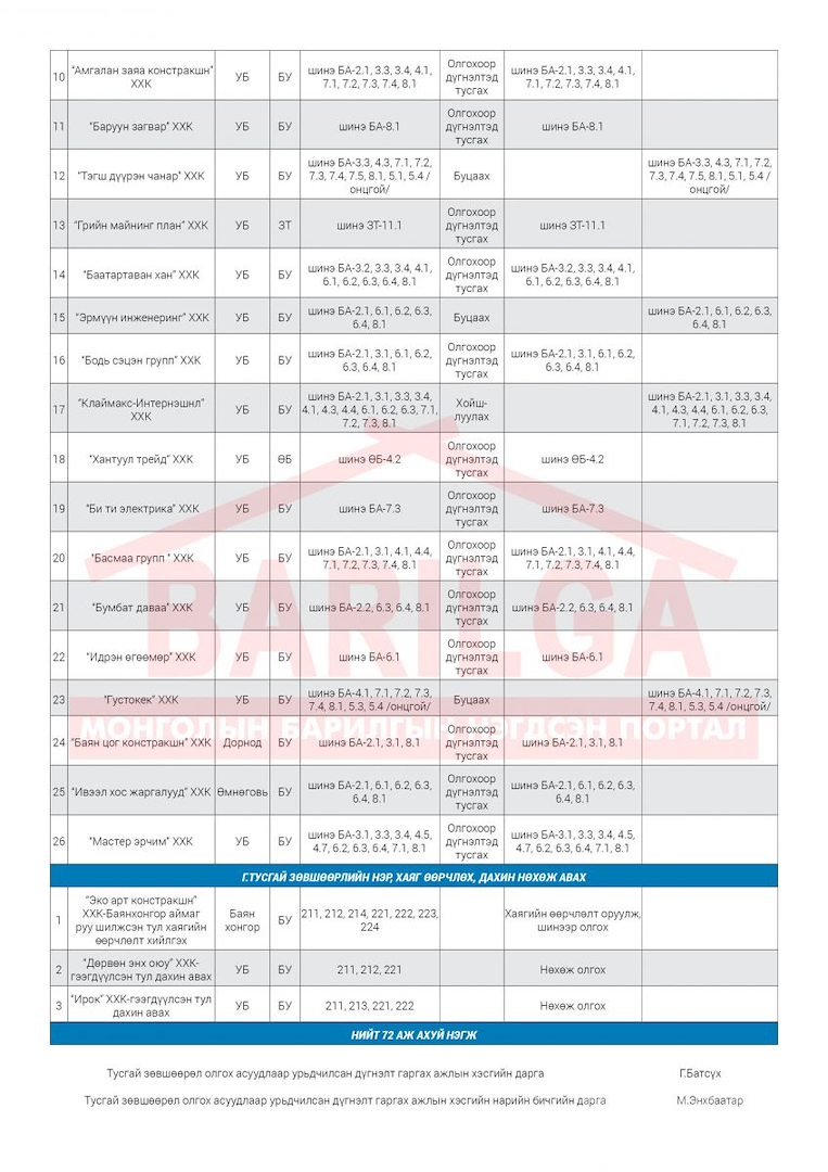 Мөн 5-р сарын 10-ны өдөр хийсэн тусгай зөвшөөрлийн хурлаар нийт 72 аж ахуйн нэгжийн хүсэлтийг авч хэлэлцсэн байна.