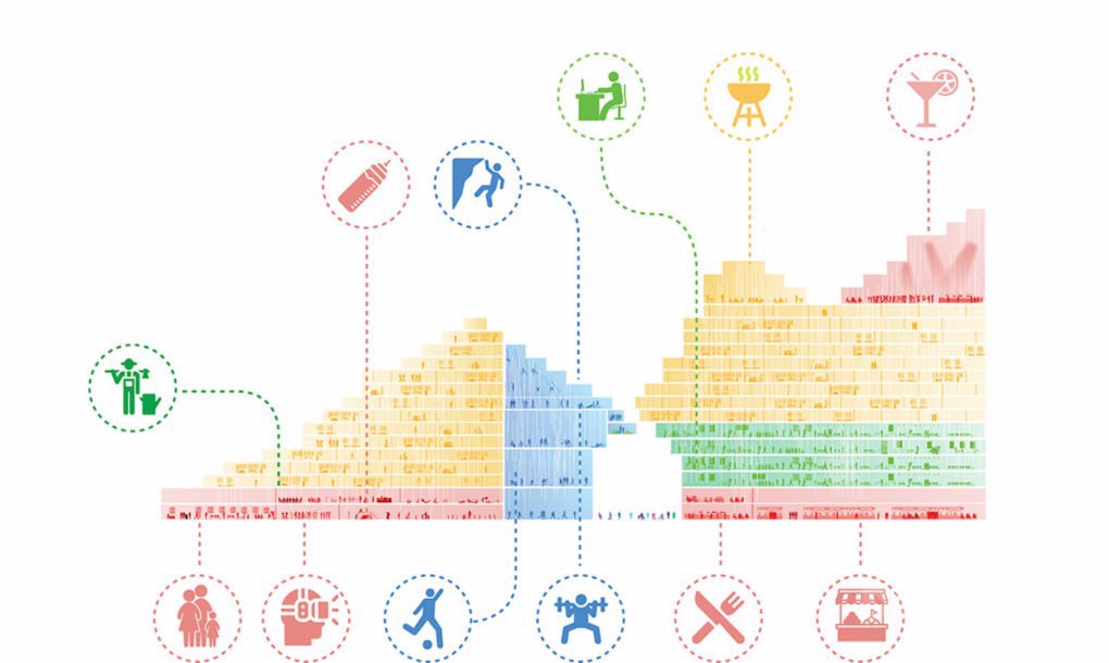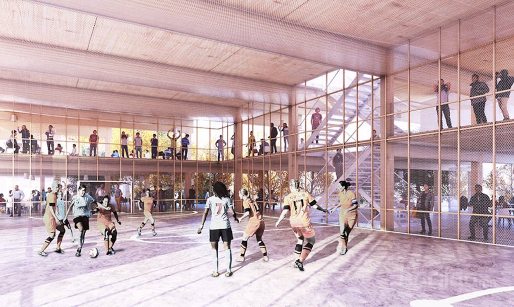 Барилгын нэг давхар болон дээврийн 6000 ам метр талбайд зоогийн газрууд, өндөр өнжүүлэх төв, гэр бүлийн оффис, олон нийтийн болон тоглоомын төвүүд гэх мэт үйлчилгээний хэсэг байрлах юм. Харин спорт төвд нь авиралтын хана, хөлбөмбөгийн талбай, дасгалын заалнуудыг байрлуулжээ.