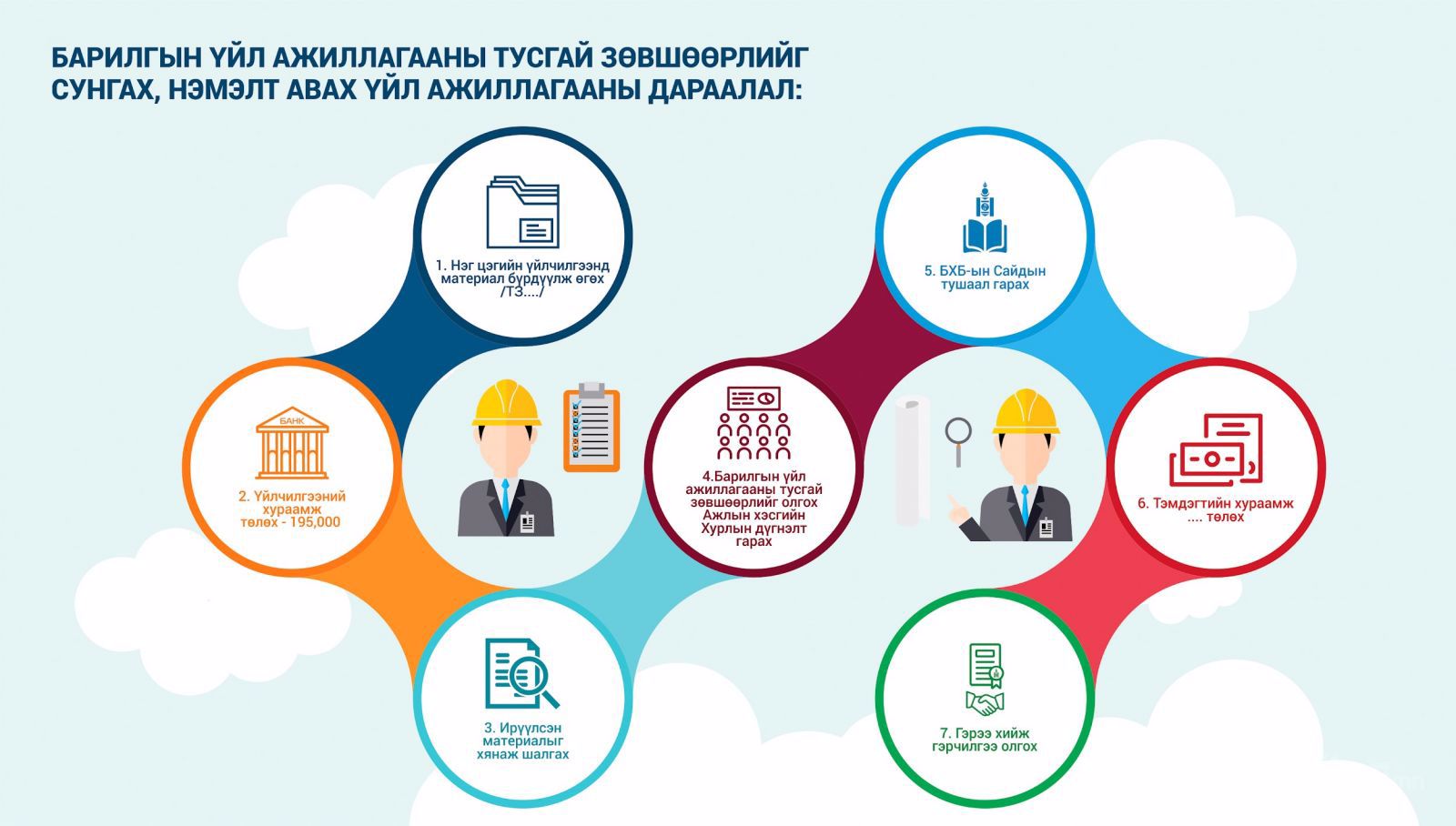 Барилгын үйл ажиллагааны тусгай зөвшөөрлийг авах үйл явцын дараалал: