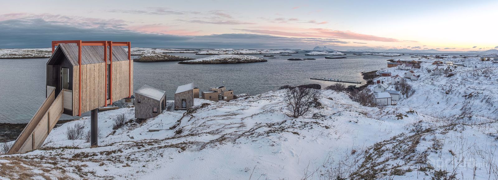 Уг төсөл нь хэд хэдэн бие даасан байшингаас бүрддэг бөгөөд тэр дунд тусдаа сауны байшин хүртэл байдаг. Хамгийн өвөрмөц нь газраас дээш өндөрлөсөн нарийн суурьтай байшин юм. Тус байшин нь ган араг бүтэцтэй, дан модон хучилттай.