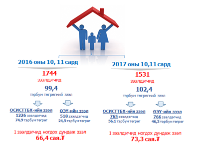 - 2017 онд нийтдээ 400 гаруй тэрбум төгрөгийг ипотекийн зээлийн санхүүжилтэд зарцуулсан байна.