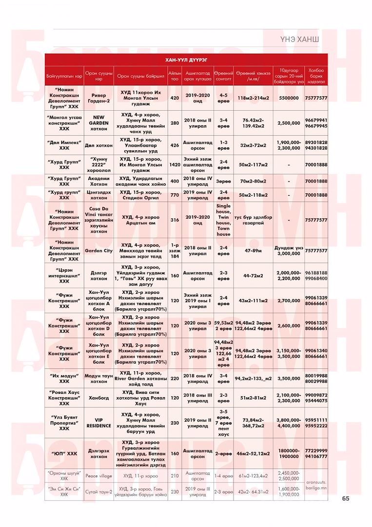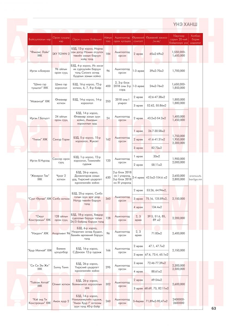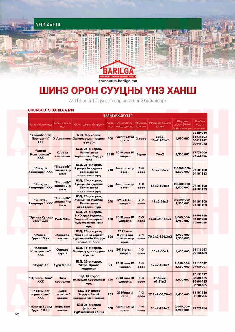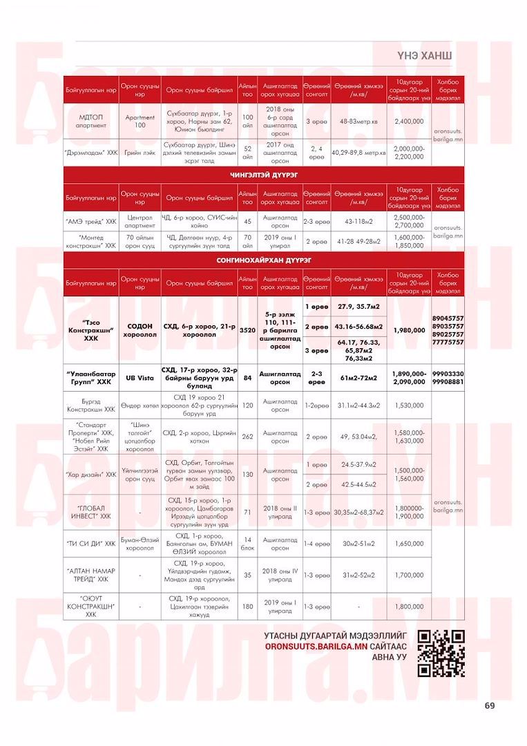 Улаанбаатар хотод захиалга авч буй Шинэ Орон Сууцны мэдээлэл 11 дугаар сарын 1-ний байдлааp