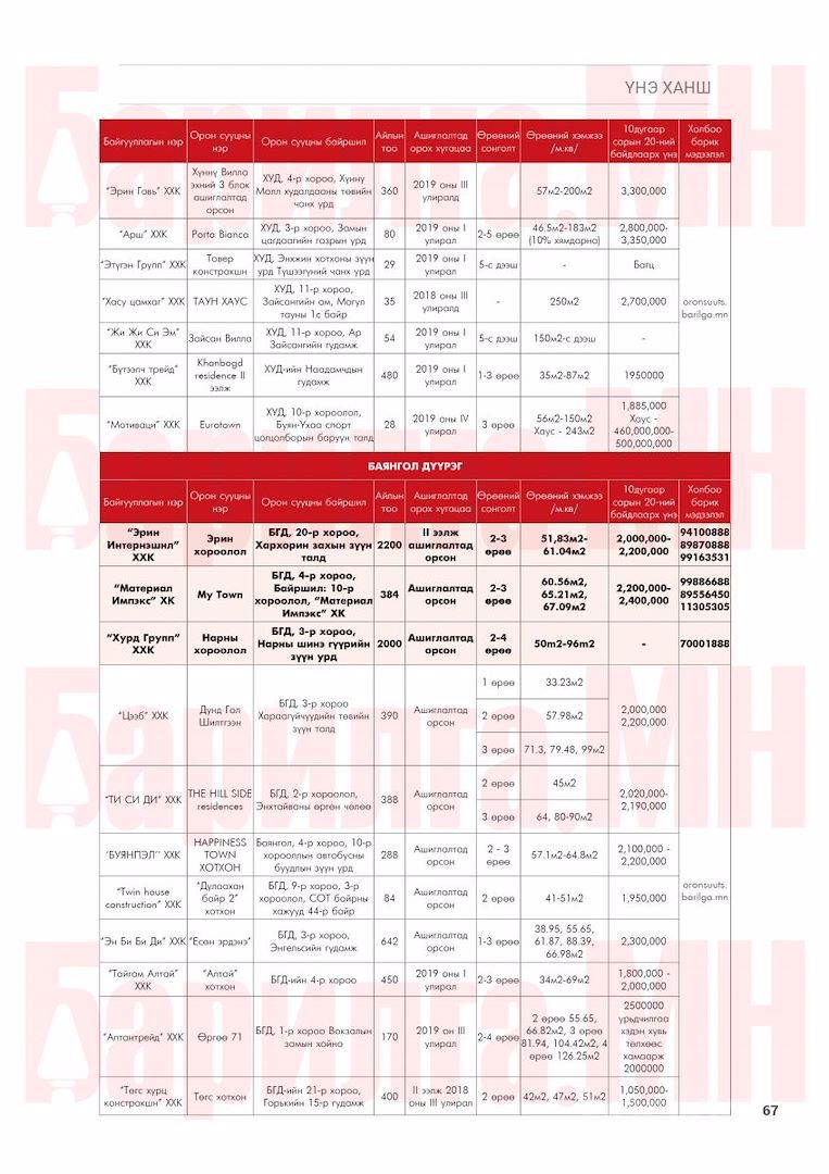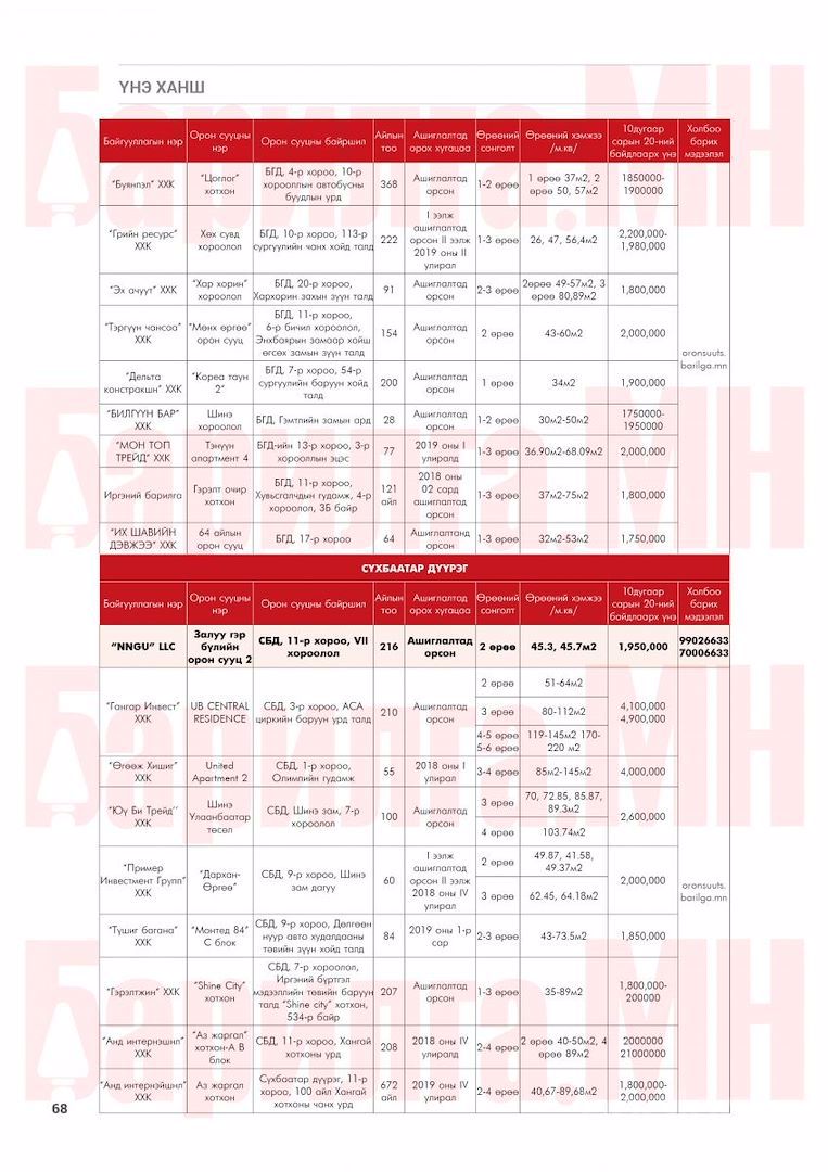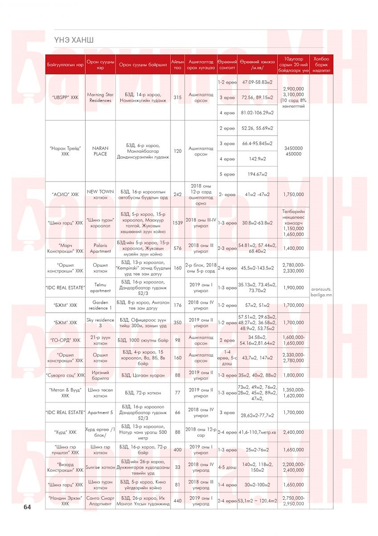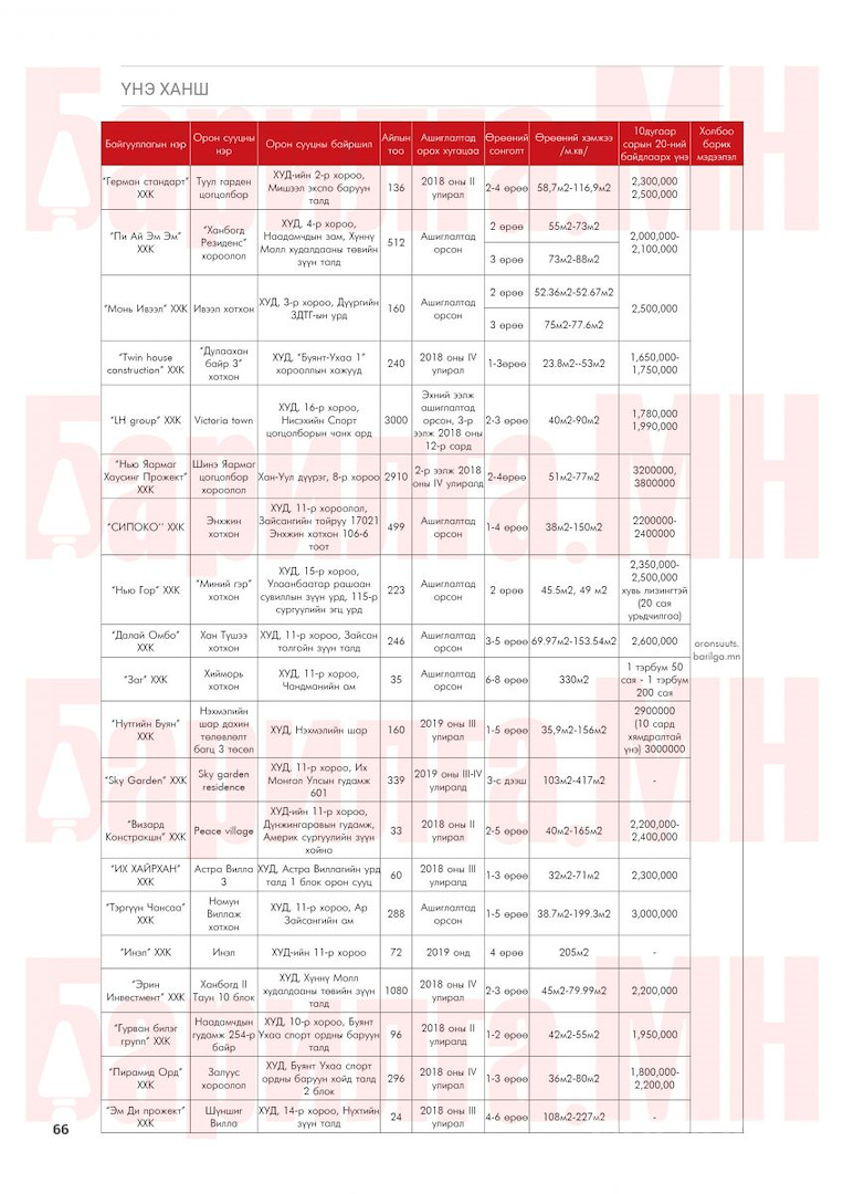 ШИНЭ ОРОН СУУЦНЫ үнэ ханшийн мэдээллийг