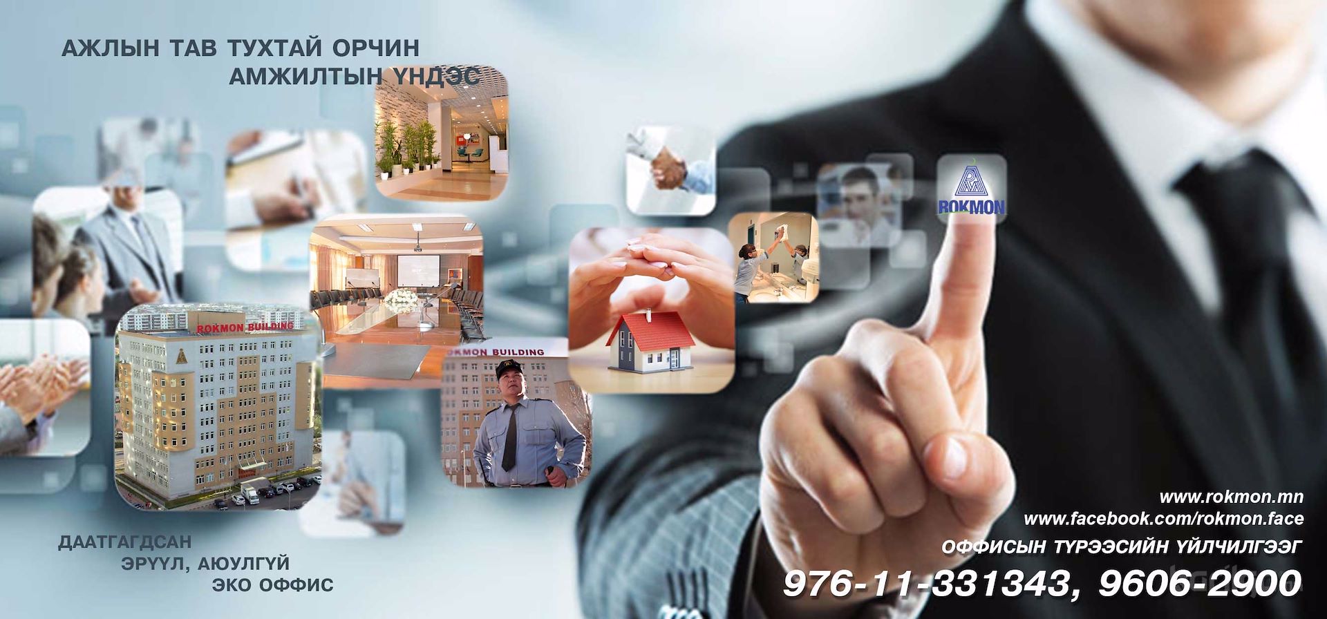 “Рокмон”ХХК нь хотын А зэрэглэлийн бүсэд байрлах 11 давхар бүхий дэлхийн стандартад нийцсэн “Рокмон Бюлдинг” оффис төвийн оффисын зориулалттай өрөөнүүдийн түрээсийн үйлчилгээг үзүүлж байна.