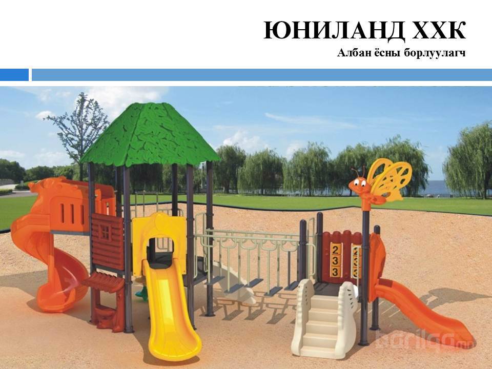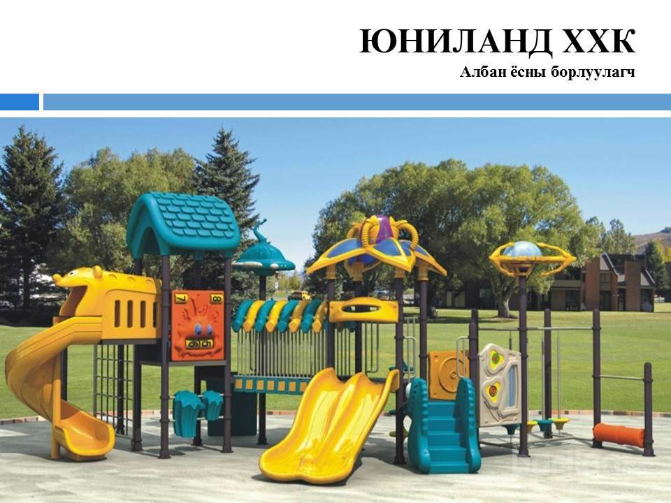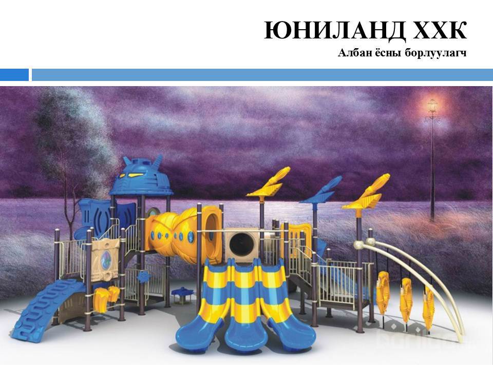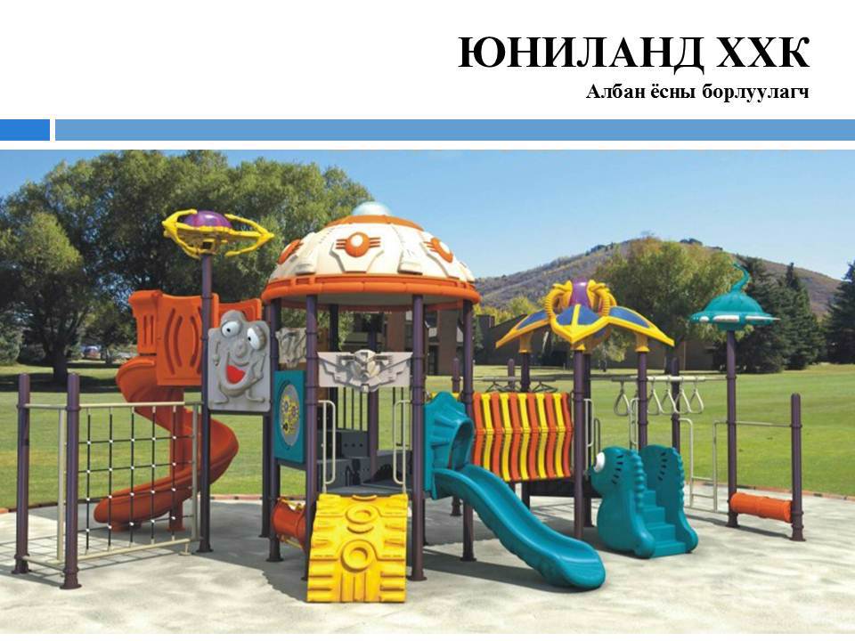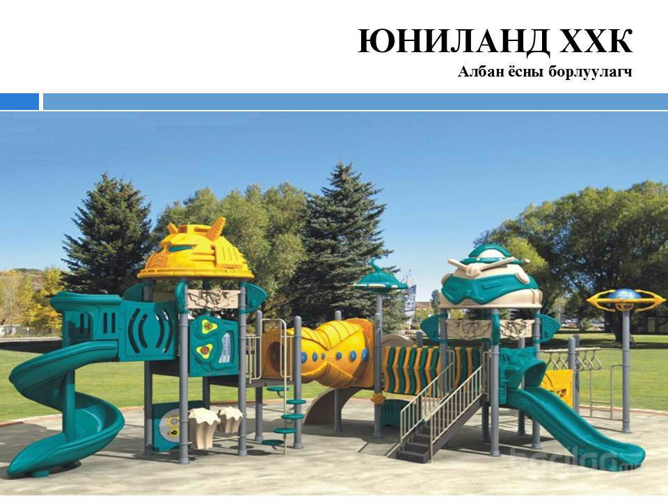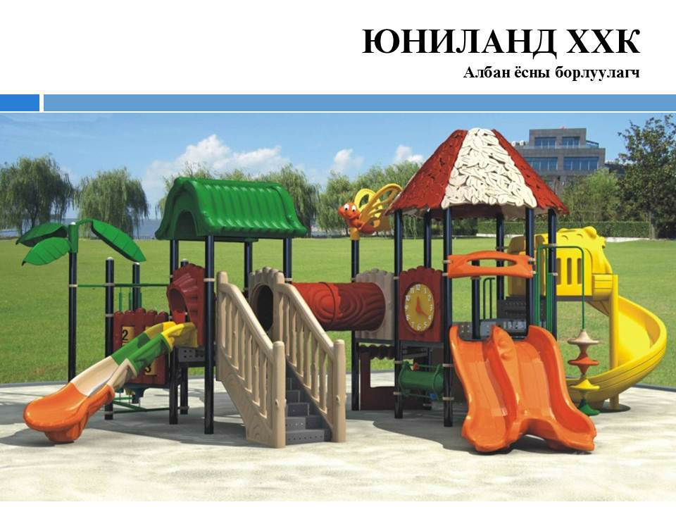 Манайх гадна талбайн болон дотор хүүхдийн тоглоом , спорт талбайн бүтээгдхүүн, хиймэл зүлэг, резин шал, бүх төрлийн төмөр хийц, сүүдрэвч, гадна талбайн сандал, хогийн сав,сагсны болон хөл бөмбөг, волейболын иж бүрэн талбайг нийлүүлэж хийж гүйцэтгэнэ.