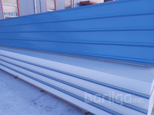 Сэндвичин хавтангийн давуу тал: Төмөр нь 0,045ммм зузаан төмөртэй, мөн хөнгөн цагааны агууламжтай учир зэврэхгүй, төмрийн будаг нь 3давхар будагддаг ба давхар лакан бүрхүүлтэй учир гандалт удаан явагдана. Мөн өнгөний өргөн сонголттойгоор үйлдвэрлэгдэж байна. Өргөн 0,97см , зузаан 5см-20см хүртэл гарах ба урт нь 19метр хүртэл үйлдвэрлэх боломжтой.