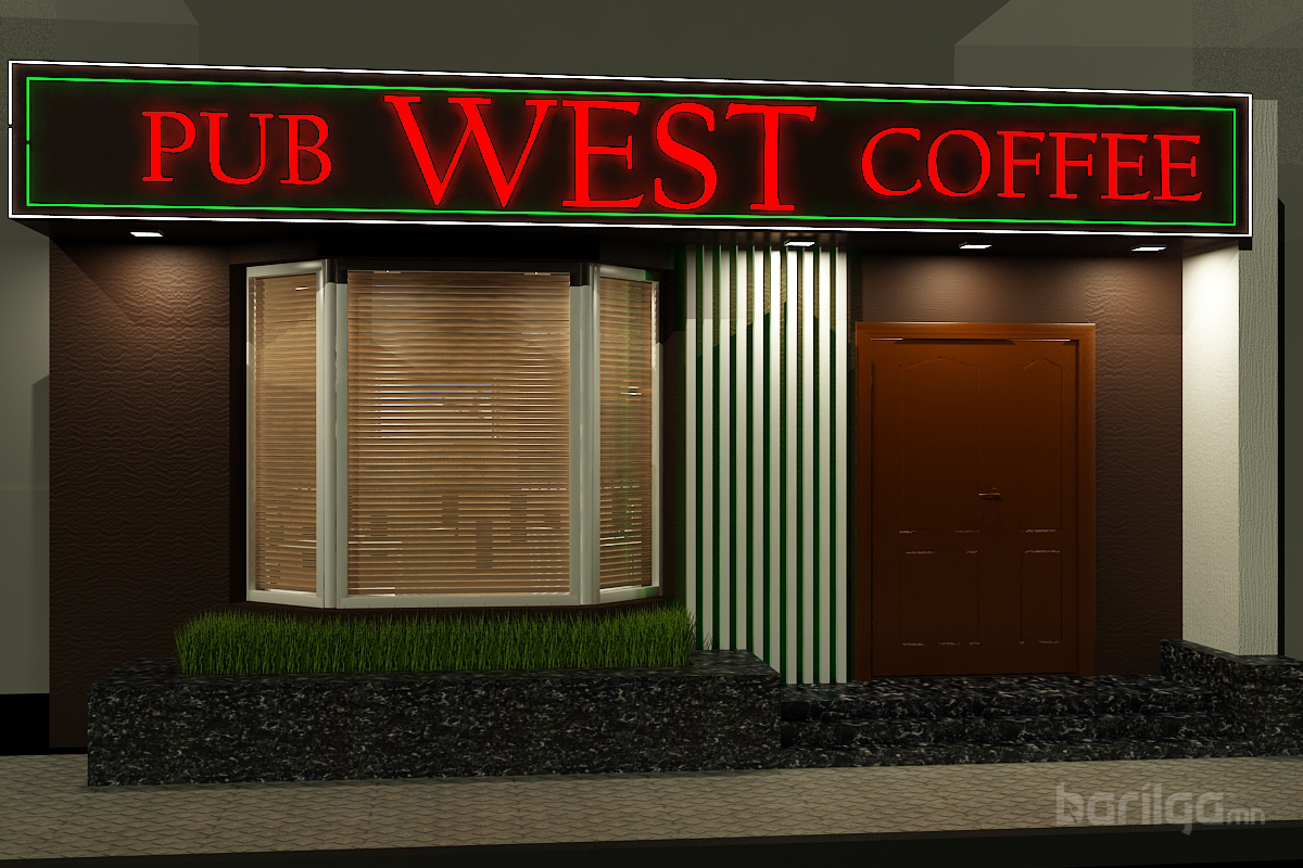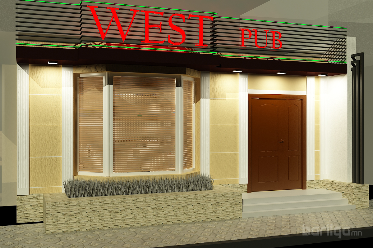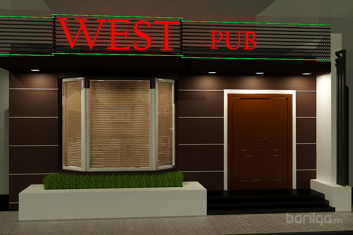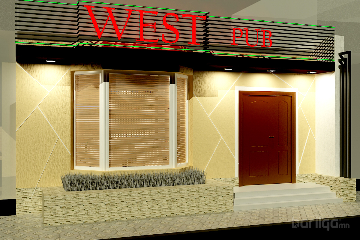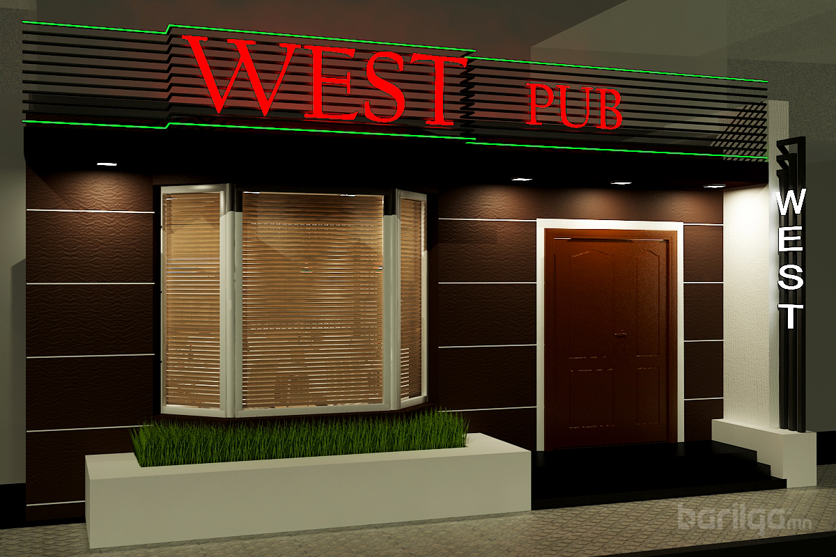 Хүнсний 1-р дэлгүүрийн ард байрлах WEST PUB-ийн интерьер, экстерьер дизайн