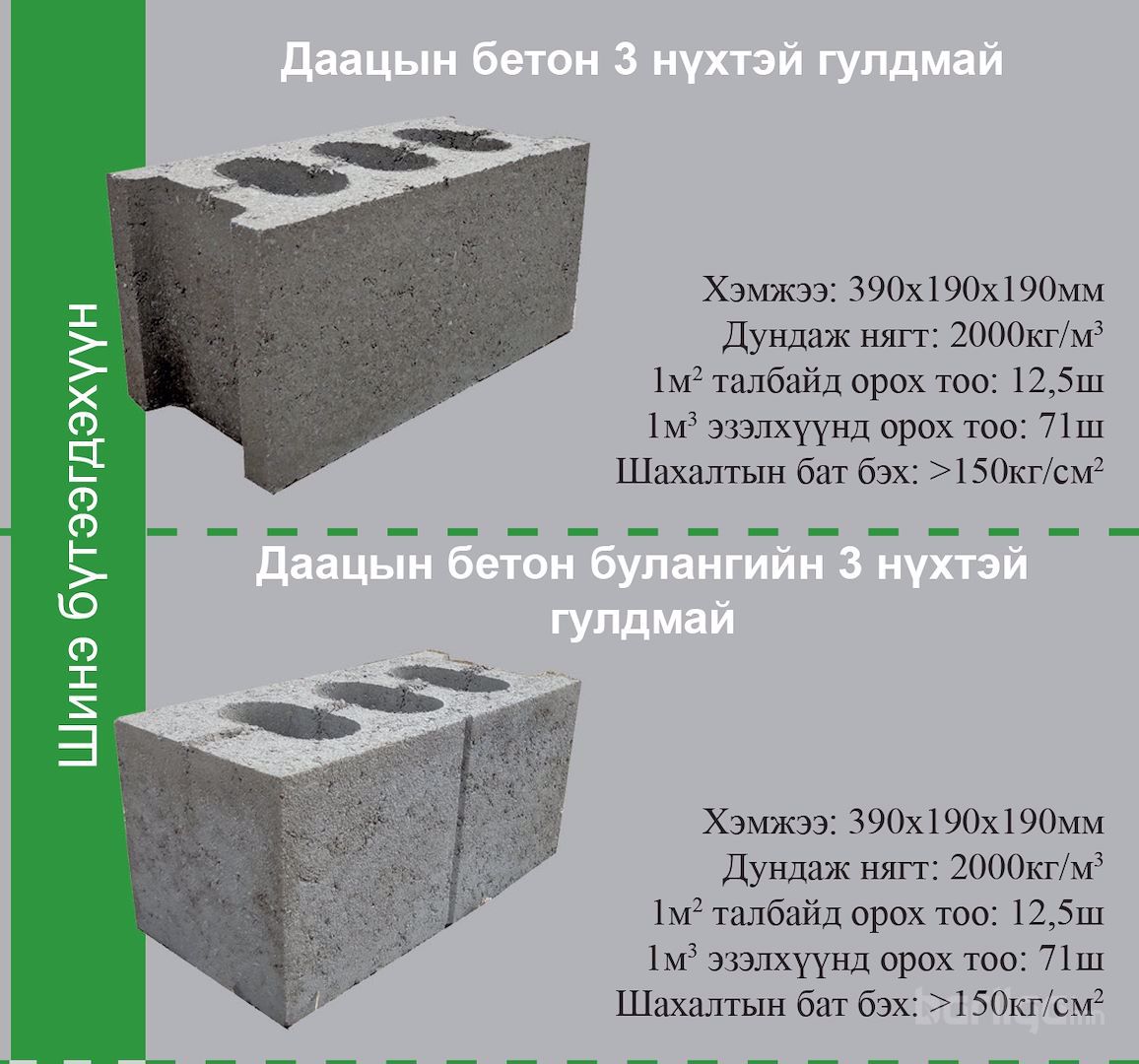 Даацын 3 нүхтэй бетон гулдмай (39x19x19)