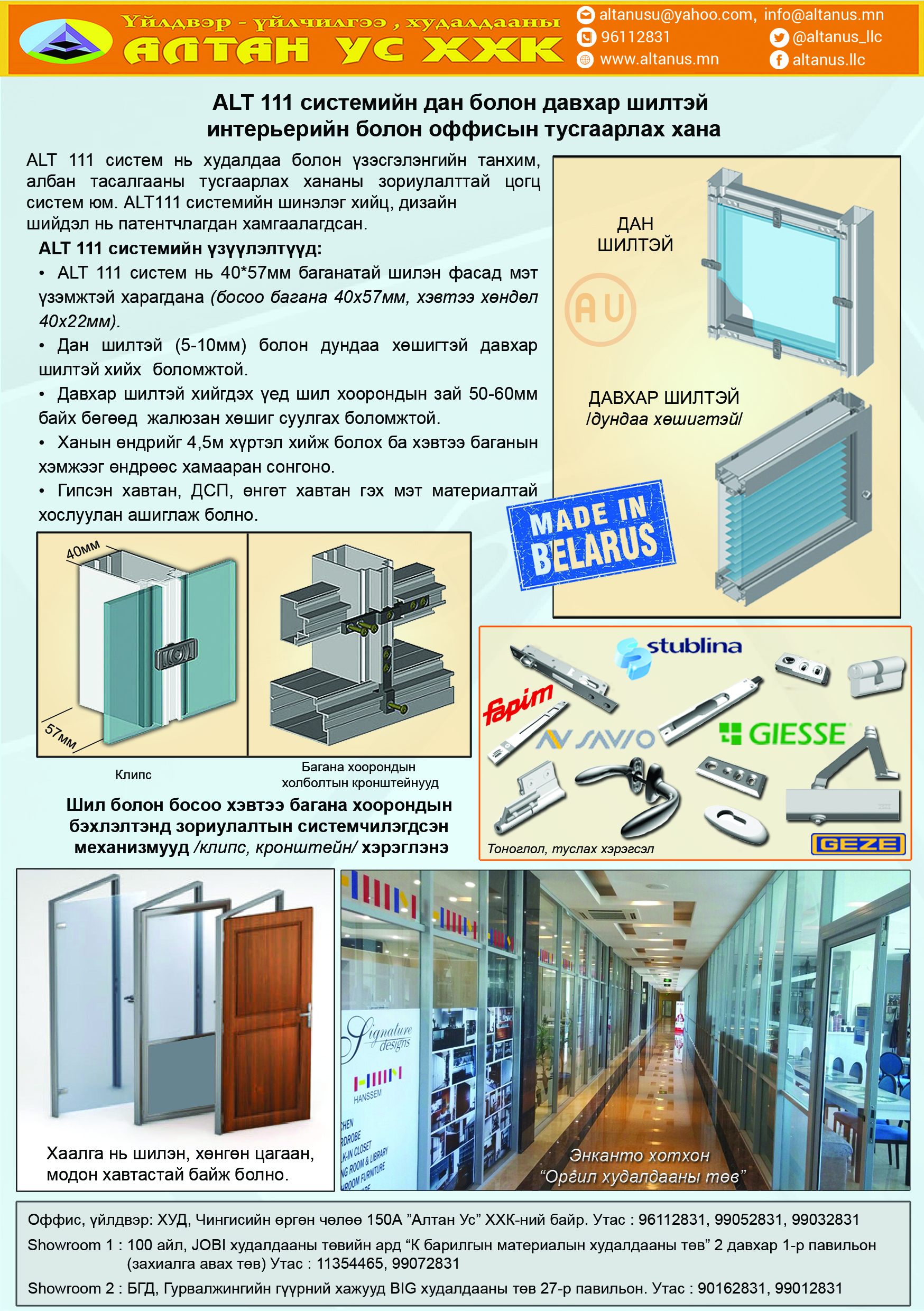ALUTECH брэндийн ALT 111 тусгаарлах хана