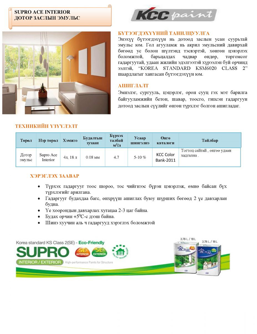 Дотоод заслын эмульс - SUPRO SE INTERIOR