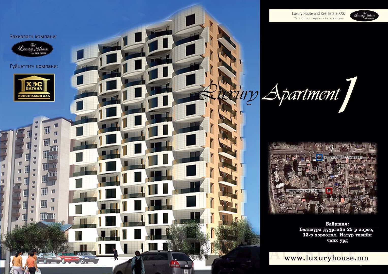 Лакшири апартмент-1 төсөл нь "Лакшири Хаус энд Рийл Эстэйт" ХХК -ийн хэрэгжүүлж буй 112 айлын 1-3 өрөө байрны зохион байгуулалттай стандарт сайн зэрэглэлийн орон сууц юм.