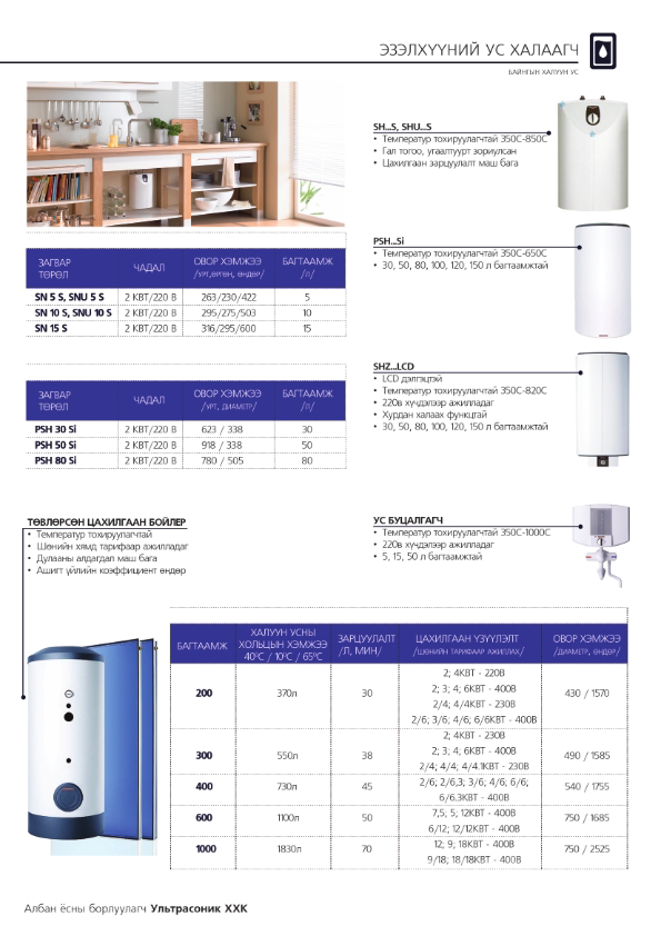 Эзэлхүүний бойлерын багтаамж: 5литр - 1000литр