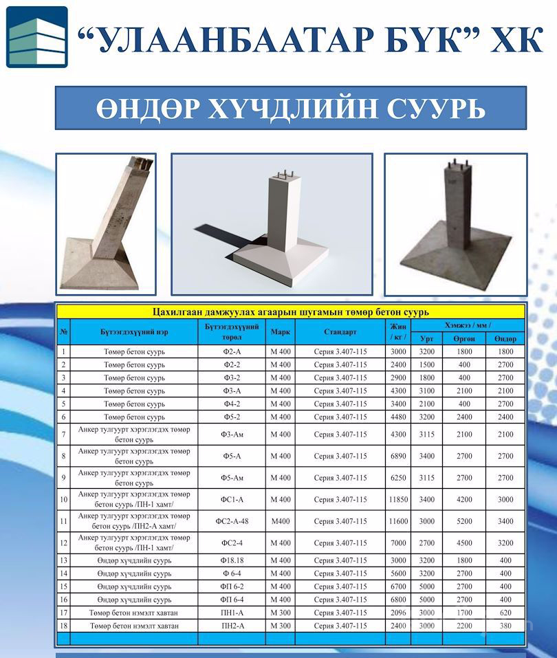 - 35-500 кВ-ын цахилгаан дамжуулах дэд станцид хэрэглэх төмөр бетөн эдлэлийг үйлдвэрлэнэ.