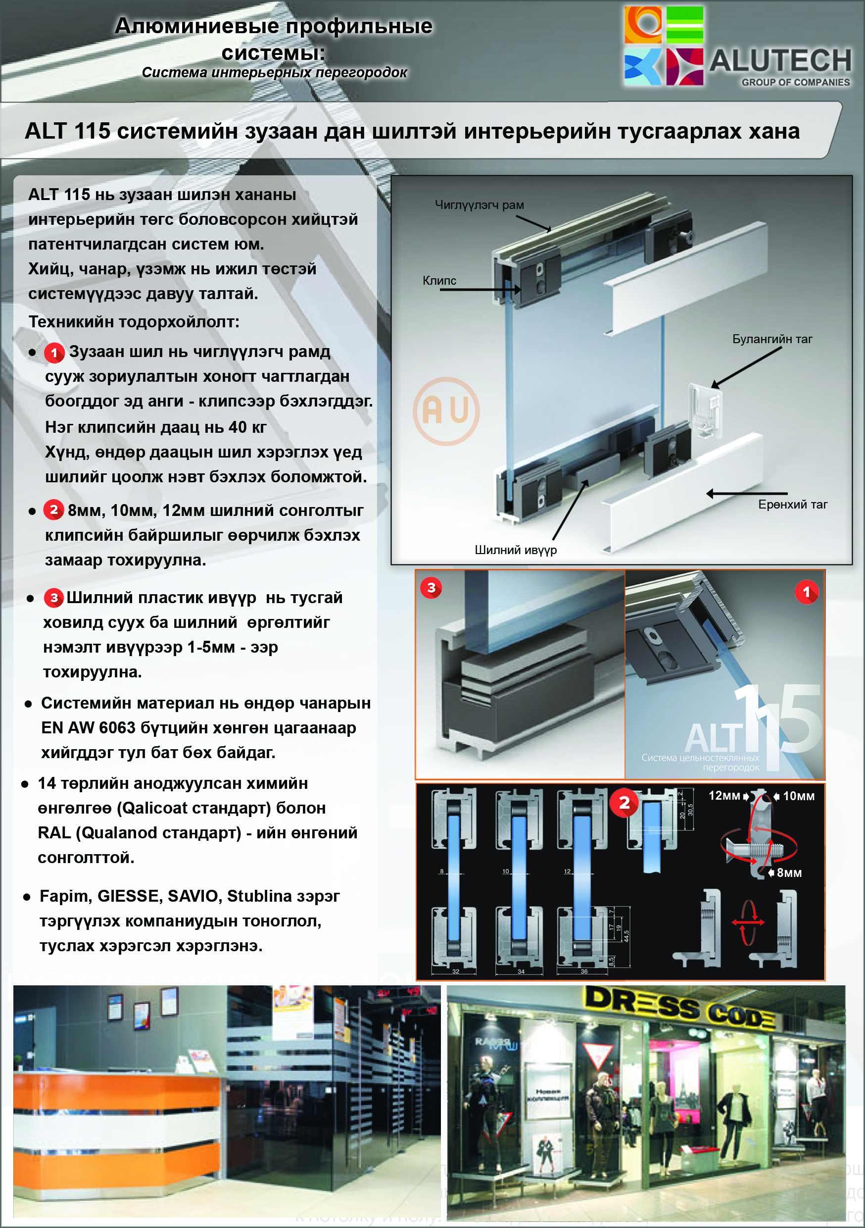 ALUTECH брэндийн ALT 115 тусгаарлах хана