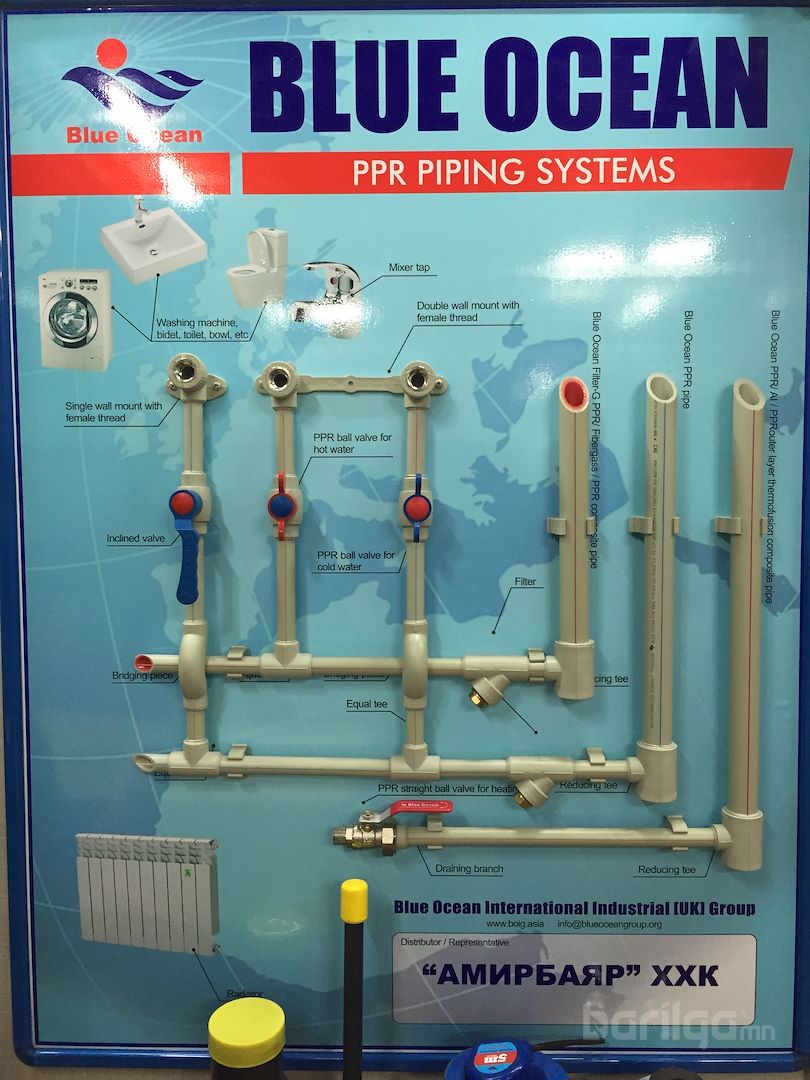 Оросын Холбооны Улсын Blue Ocean компанийн PPR бүтээгдэхүүн. Сантехникийн труба, хаалт, холбох хэрэгсэл.