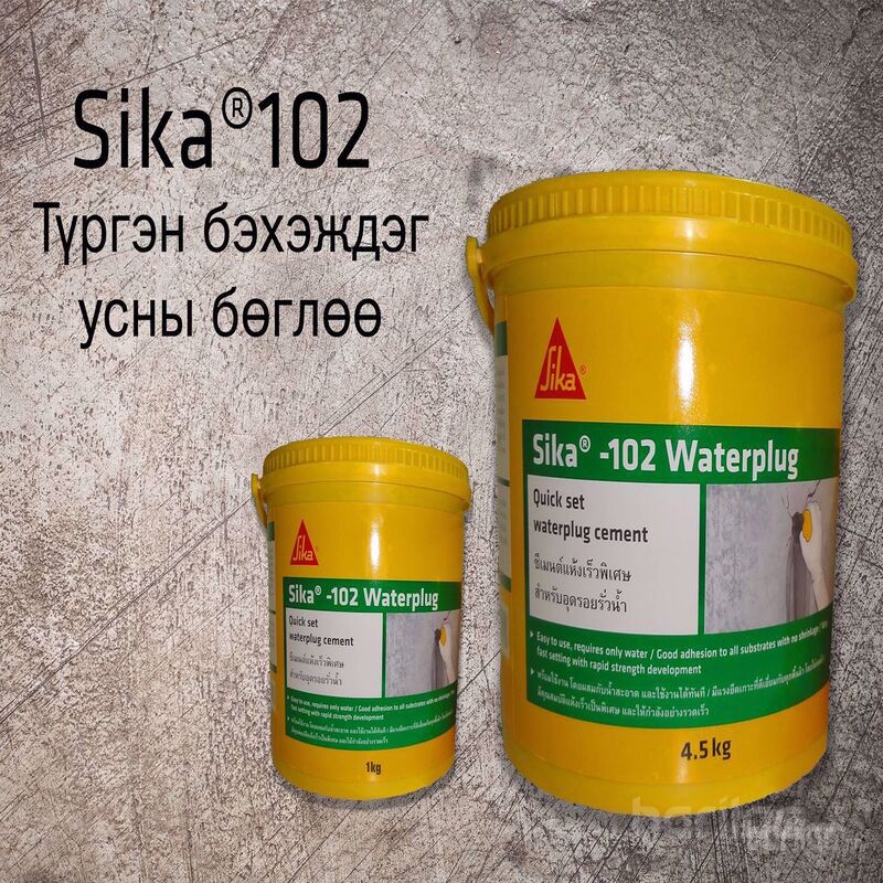 Sika 102 нь найрлагандаа хлорид агуулаагүй, хэрэглэхэд бэлэн зуурмаг. Усны хольж зуурмагц маш хүчтэй, хурдан бэхждэг түр зуурын усны бөглөө болно.
