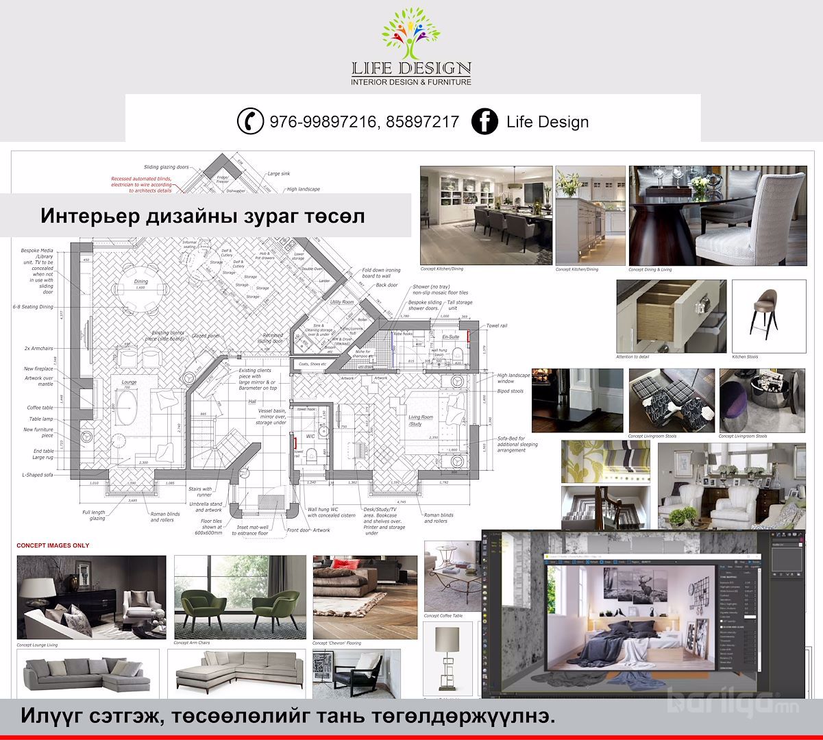 Интерьер дизайны зураг төсөл:/чадварлаг интерьер дизайны баг таны зураг төсөл дээр ажиллаж мэргэжлийн өндөр түвшинд гүйцэтгэнэ/