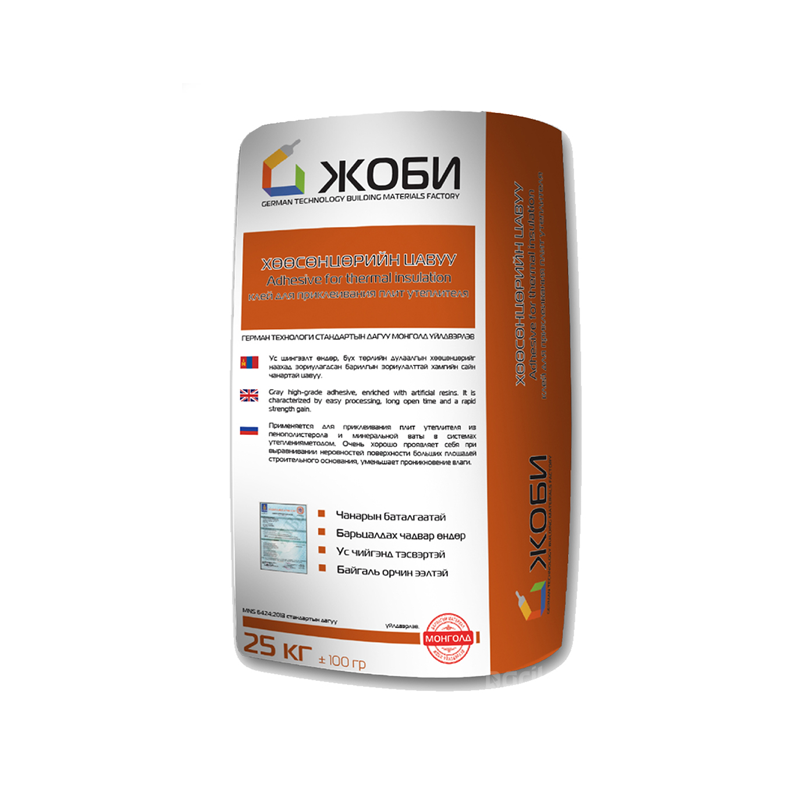 Гадаргууг бэлтгэх, ашиглалт: Суурь гадаргуу нь хуурай, +5оС доошгүй хэмийн дулаантай байх ёстой. Гадаргын тоос шороог цэвэрлэж, тотгорыг хусна. Шавардлагатай гадаргын шавардлагыг 1 үеэр тавьсан байх ёстой бөгөөд зузаан нь 10 мм доошгүй байна. Усанд тэсвэртэй будгийг хусаж арилгана. Саванд 6 л бүлээн усанд 25 кг хуурай хольц оногдохоор бодож найруулна. 10 минут амраагаад дахин хутгана. Дулаалгын хөөсөнцрийн ирмэгийг тойруулан түрхээд, хананд жигд дарж наана. Хөөсөнцрийг наах мөн засварлах хугацаа нь орчны хэмийн хэлбэлзэл болон гадаргын чийг шинrээлтээс хамаарна. Орчны хэм өндөр мөн гадаргуу нь чийг ихээр шингээдэг байх тусам хөөсөнцрийг наах болон байрлалыг нь засварлах хугацаа багасна. Хадгалалт: Хуурай хольцыг модон тавиур дээр газраас 10 см-аас дээш, нарны шууд тусгалаас хол, ус чийггүй, хуурай, сэрүүн нөхцөлд хадгална. Бүтээгдэхүүнийг үйлдвэрлэсэн өдрөөс хойш 6 сар хадгална |