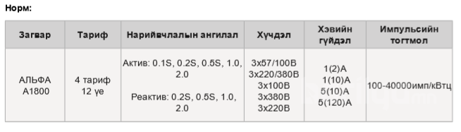 0.1S, 0.2S, 0.5S нарийвчлалын ангилалтай олон үйлдэлт Альфа А1800 төрлийн ЦЭХ -ний тоолуур нь хувьсах гүйдлийн хэлхээн дэх идэвхтэй, хуурмаг эрчим хүч болон цахилгаан шугам, хүчний трансформаторын алдагдлыг тооцох, ачаалалын чиглэлд тухайн цахилгаан хэрэглэгчийн түгээлт, сүлжээний параметрийг хэмжиж хадгалах, ЦЭХ-ний хяналт тооцооны автома тчилагдсан системийн бүрэлдэхүүн хэсэг болж ажиллахад зориулагдсан.