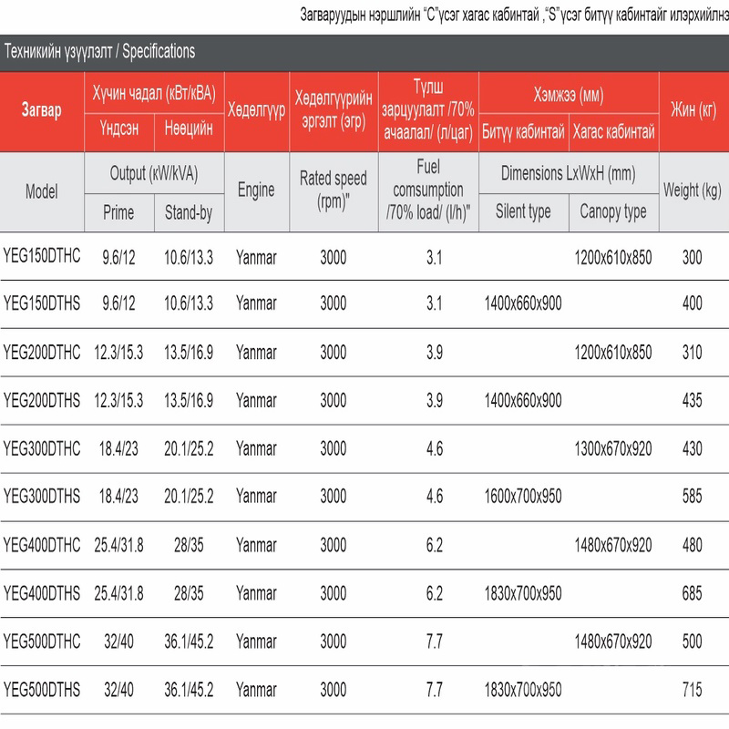 Дизель цахилгаан үүсгүүр 13.3-45.2kVA (Yanmar YEG Series)