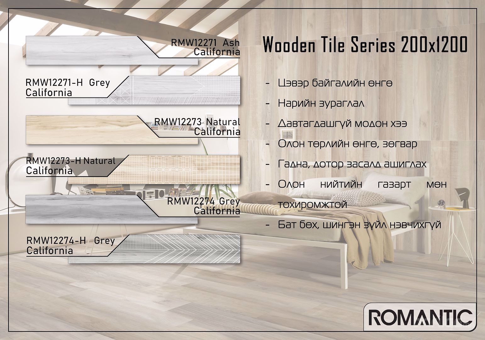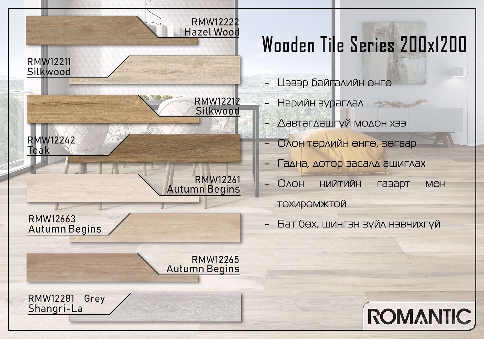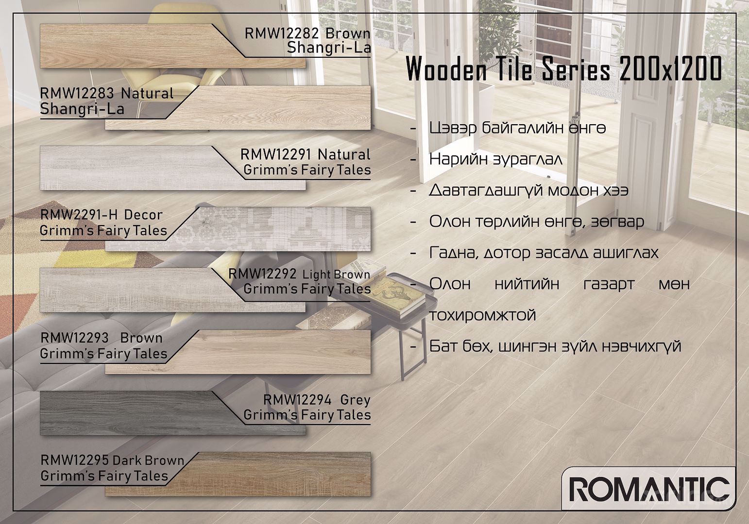 Давтахгүй хээ, бат бөх байдал, өнгөлөг гадаргуу, нарийн зураглал бүхий 20 гаруй төрлийн Wooden Tile цувралыг танилцуулж байна.