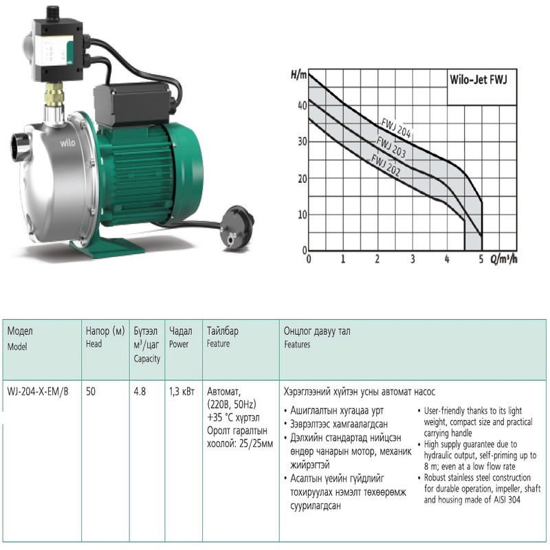 Хэрэглээний хүйтэн усны автомат насос (Wilo)