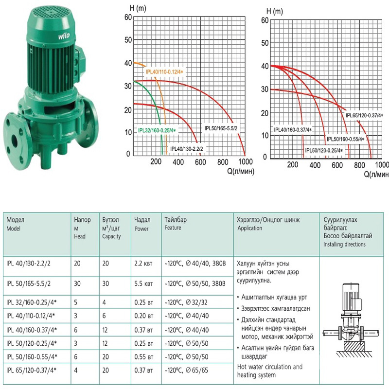 Халаалтын сүлжээ, халуун усны эргэлтийн насос (Wilo)
