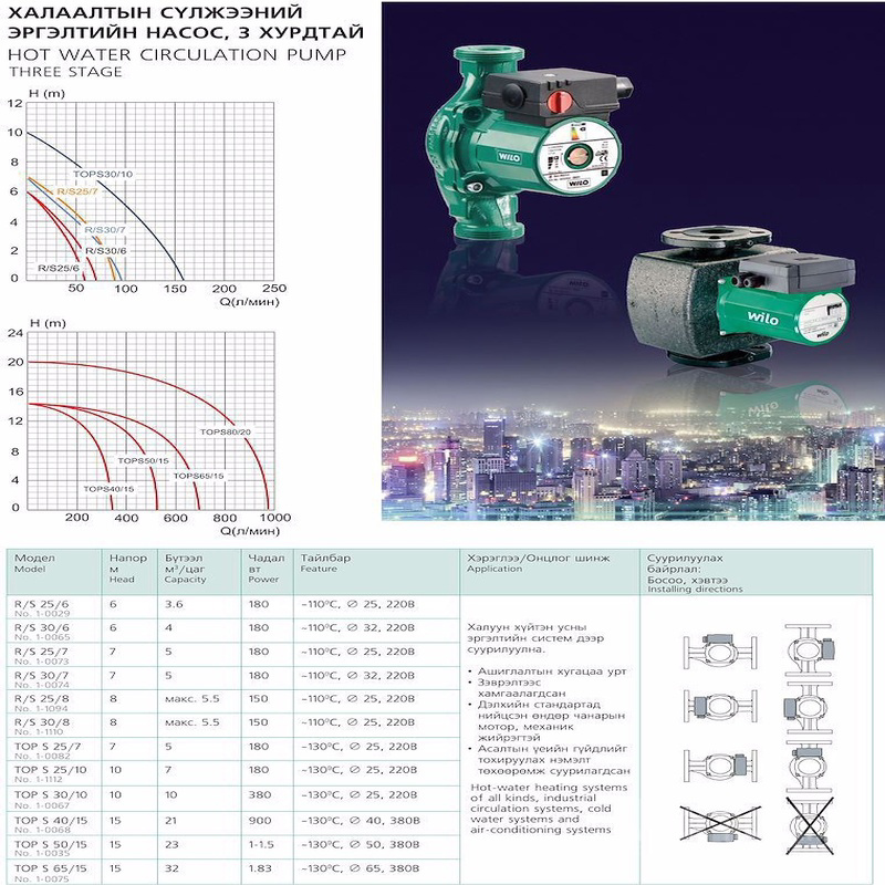 Халаалтын сүлжээний эргэлтийн насос 3 хурдтай (Wilo)