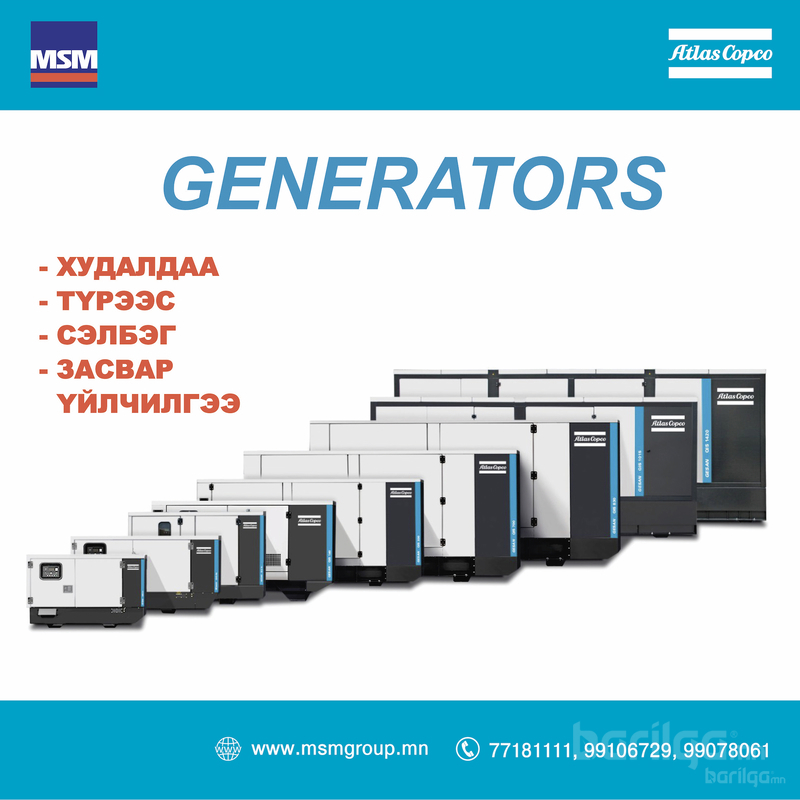 Бизнесийн бүхий л талбарыг генераторгүйгээр төсөөлөх аргагүй. Дэлхийн брэнд Atlas Copcо генераторууд