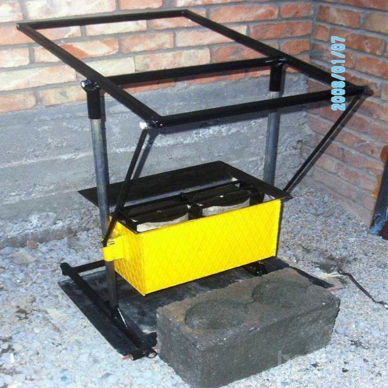 | Техникийн үзүүлэлт Ажиллах хүний тоо-1-2хүн Үйлдвэрлэх хүчин чадал-200 ширхэг/хоног хүртэл Ажиллах хүчдэл-220Вольт Шаардлагатай чадал-0,25кВт Үйлдвэрлэх бүтээгдэхүүний хэмжээ 20-20-40мм Ашиглах материал Элс, цемент, шавар, үнс Давуу тал. 1.Төхөөрөмж энгийн хялбар хийцтэй учраас эвдрэл гэмтэл багатай, найдвартай ажиллах болон засвар үйлчилгээ хийхэд хялбар. 2. Гэр ахуйн нөхцөлд үйлдвэрлэл явуулах бүрэн бололцоотой. Дуу чимээ бага, цахилгаан эрчим хүчний зарцуулалт бага. 3. Ажлын байр болон том хэмжээний ажлын талбай шаардлага байхгүй. 4. Хөнгөн учраас төхөөрөмжийг гар аргаар тээвэрлэн дуртай газраа хүргэн үйлдвэрлэл явуулах бололцоотой. 5. Ажиллах хүний тоо цөөн. Өрхийн нэгээс хоёр гишүүн үйлдвэрлэлийг явуулах бүрэн бололцоотой. 6. Бүтээгдэхүүний өөрийн өртөг хамгийн хямд. 7. Ханын нүхтэй блок үйлдвэрлэх төхөөрөмж нь Оюуны өмчөөр хамгаалагдсан. |