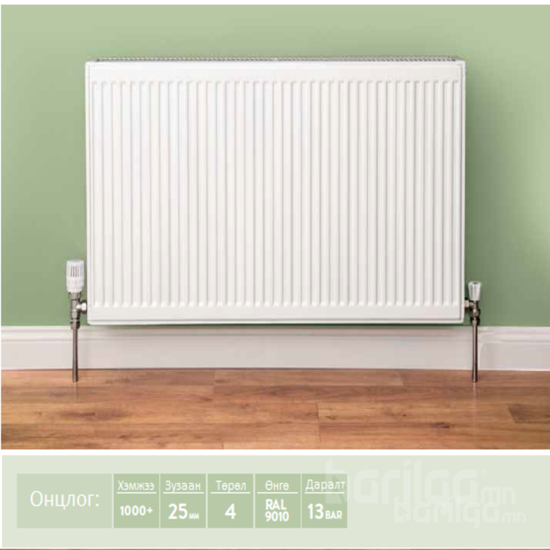 Манай улсын б барилгын станларт нормд бүрэн нийцэж хамгийн эрэлт ихэтй, их хэмжээгээр захиалга авч байгаа радиатор бол #TYPE болон TYPE33 хэмжээтэй загварууд юм