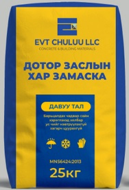 ISO: 9001, 14001, 45001 олон улсын стандартыг нэвтрүүлсэн, MNS-6424:2013 стандартын шаардлага хангасан хуурай хольцийн үйлдвэр юм.Уг бүтээгдэхүүн нь полимор агуулсан давирхайлаг эрдэстэй тул уян чанартай. 25кг савалгаатай хольц нь 6-8м2 талбайд зориулагдана.